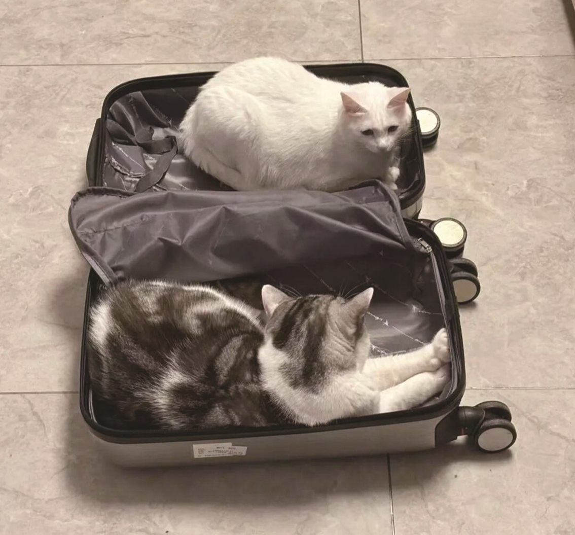 今年退休后,老吴和妻子外出旅游的次数也多了,每次看到老吴收拾拉杆箱,两个小家伙就迫不及待躺进去,似乎也想和主人一起去看看外面的世界。老吴只好好声好气地哄它俩:“你俩好好给我看家,我会给你们带好吃的回来。”