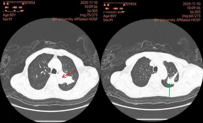据悉,老人近半个月来反复出现胸口隐痛症状,左侧后背痛感尤为明显。经胸部CT检查,发现其左肺存在占位性病变,疑为肺癌,并伴有部分肺组织萎缩。此外,检查显示老人还存在慢性支气管炎、少量心包积液、血管增宽及胸椎骨折等问题。
