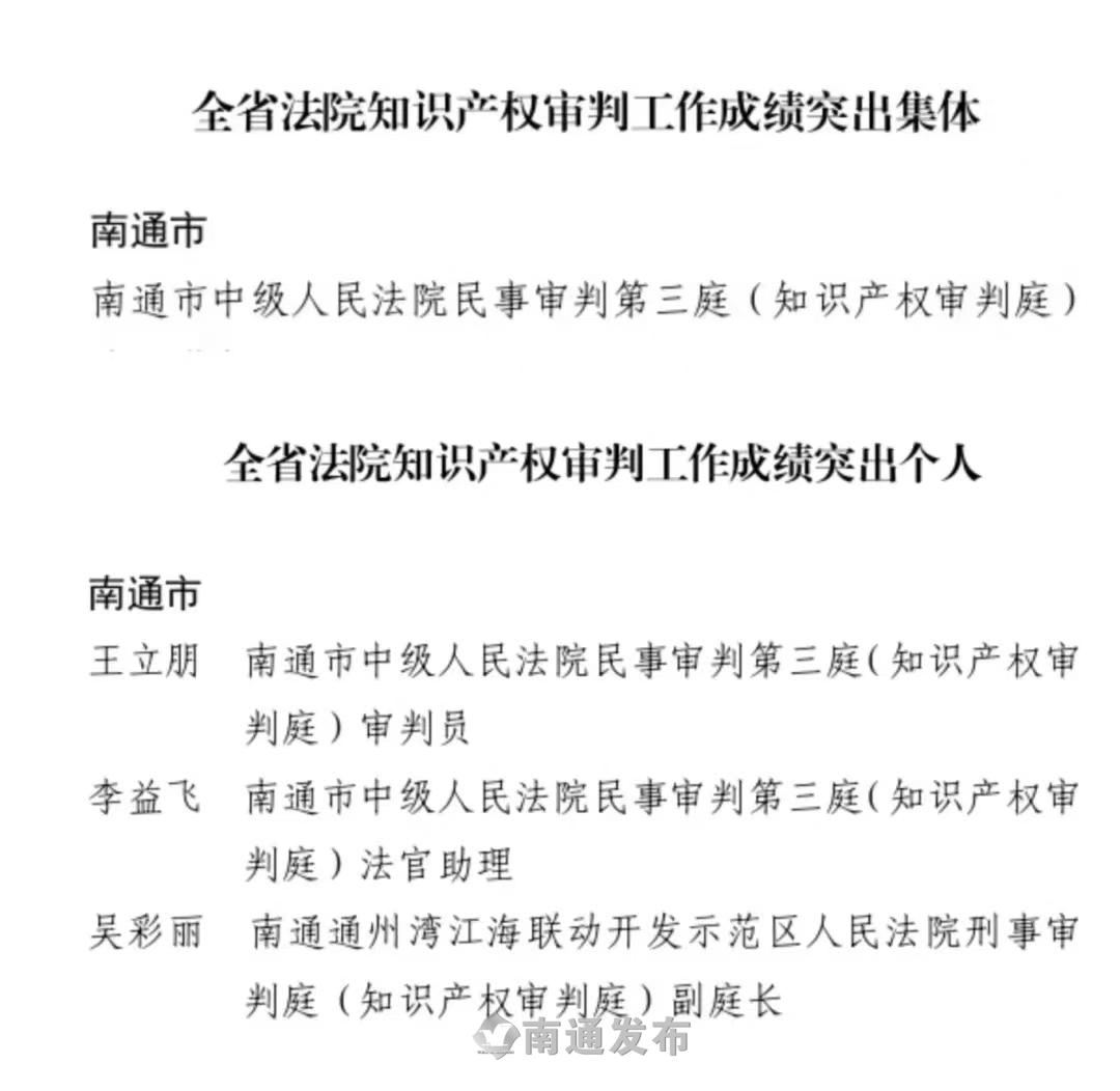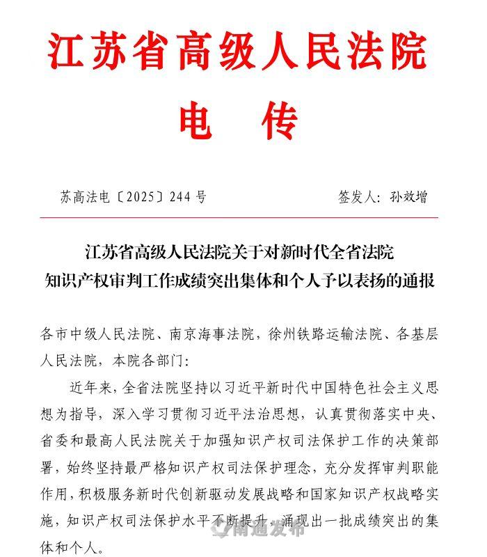 知识产权司法保护赋能高质量发展丨南通法院一集体、多人获省高院通报表扬