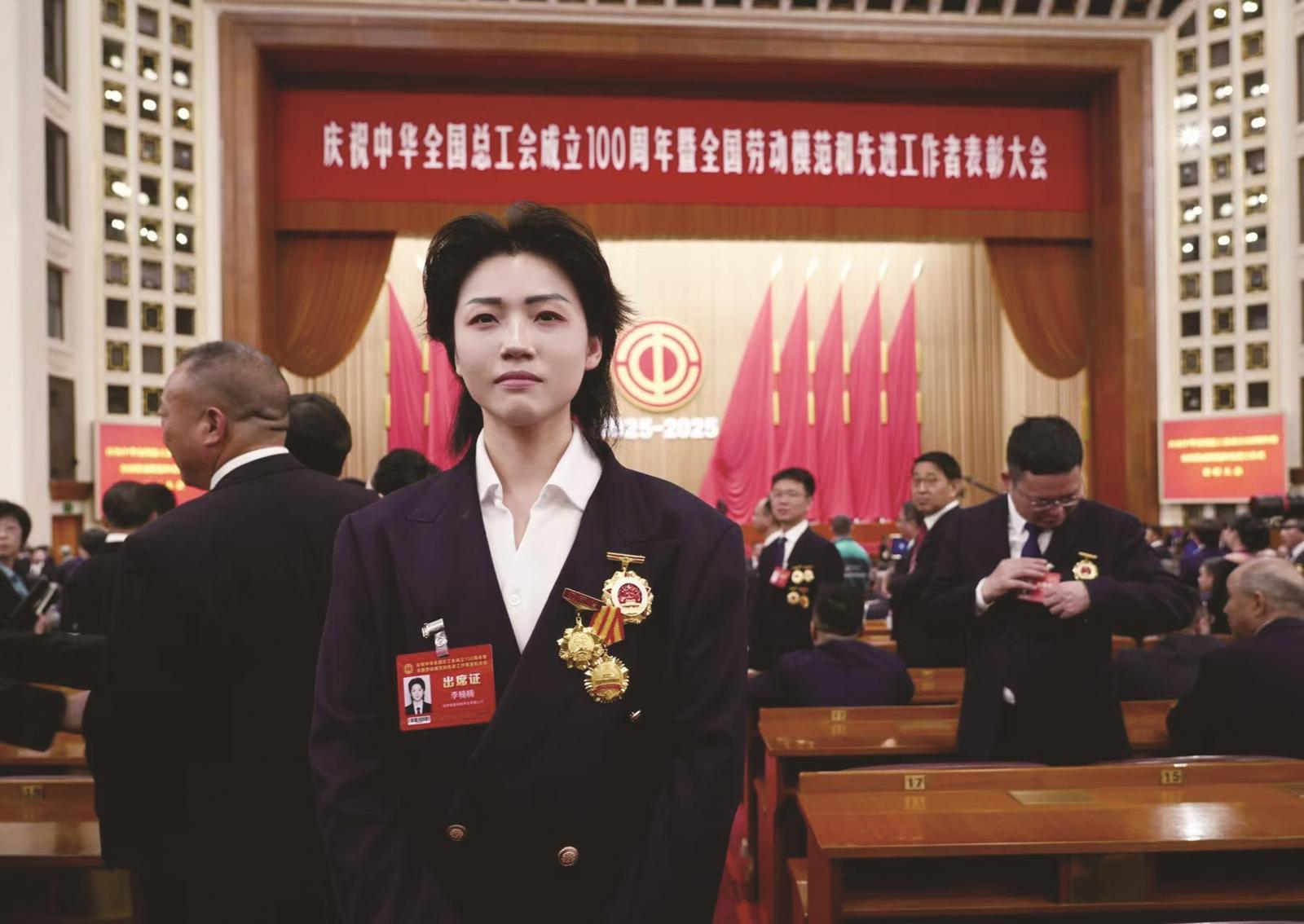 2025年,李楠楠在北京领取全国劳模奖章。