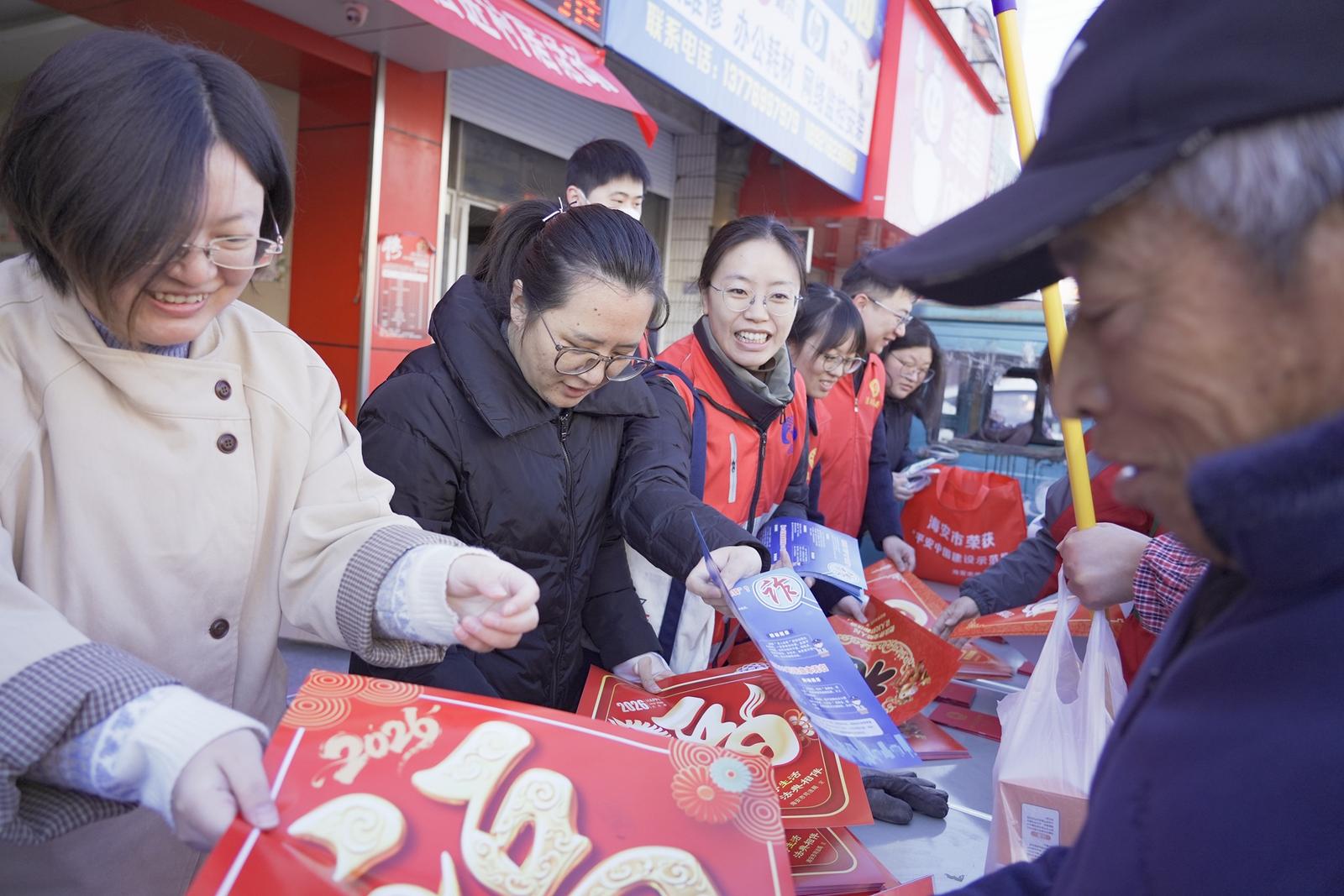 活动伊始,便吸引了众多赶早市和路过群众的驻足。来自滨海新区司法所的工作人员,结合当前农村地区高发的借贷纠纷、土地承包流转等问题,用当地方言进行针对性讲解,让晦涩的法条变得通俗易懂。市场监管局滨海新区分局的工作人员则聚焦食品安全、商品真伪辨识、老年消费陷阱等贴近日常生活的主题,发放特制的图文手册,并现场演示如何查询商品信息。