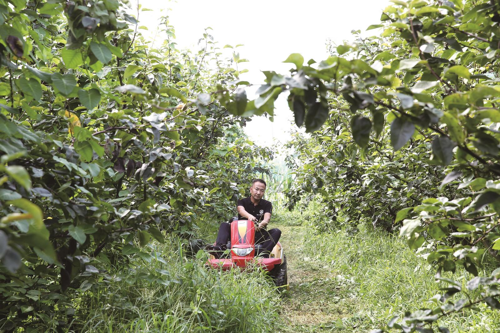 “好苗子得配好方子,种梨光有好品种还不够。”孙光表示,自己的朋友圈和短视频平台早被农技科普内容“霸屏”,只要一有空,他就钻进农技书籍里啃知识,还经常请教省农科院专家,总结纠偏现有的种植技术。为了培育生态优质梨果,梨园全程采用有机肥改良土壤,病虫害防治则用上了“绿色套餐”:白天悬挂粘虫板,晚上开启诱虫灯,从源头减少农药使用,维持生态平衡。此外,园区还推行“果园生草”模式,通过人工种草和自然留草相结合的方式保持土壤湿度,待杂草长到一定高度,再用碎草机就地粉碎还田,既提升了土壤肥力,又确保了梨果的原生态品质。
