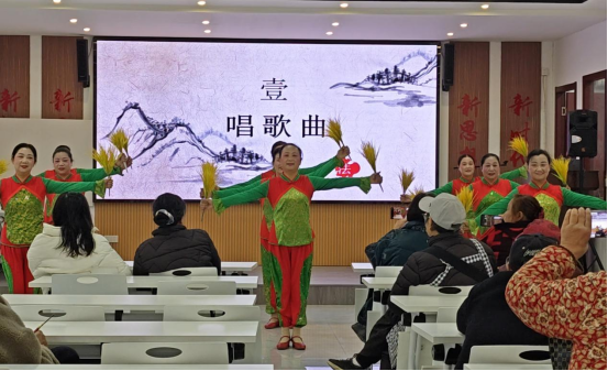活动最后,红枫艺术团根据移风易俗主题为大家献上精彩的歌舞盛宴。舞蹈《幸福赞歌》以灵动的舞姿展现丰产村破除陋习、倡导文明的生动场景,裙摆翻飞间,尽显乡风文明的鲜活活力;歌曲《双脚踏上幸福路》用悠扬的旋律传递法治温情,歌词里满是邻里和睦、遵法守礼的美好愿景,引得现场掌声不断。演员们以饱满的热情、精湛的表演,将移风易俗的理念融入艺术表达,既为村民送上了视听盛宴,更传递了践行文明新风、共建和美乡村的真挚祝福,让温情与文明在欢声笑语中浸润人心,为此次道德讲堂活动画上圆满句号。