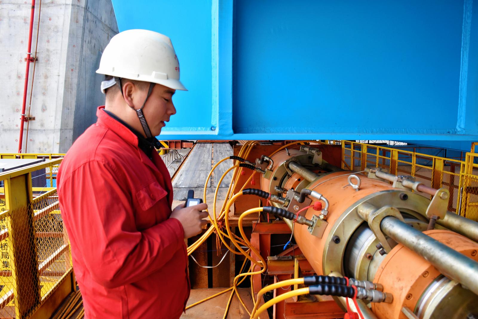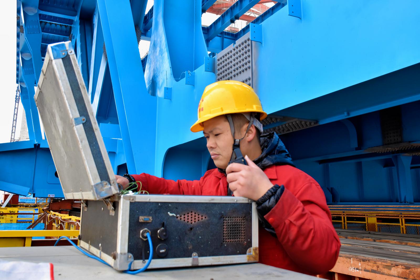 大桥主通航孔桥为双塔双索面钢桁结合梁斜拉桥,主跨400米,钢桁梁总长992米,总重量约3.6万吨,采取边跨拖拉、中跨单悬臂架设的施工方案。此次4号主塔侧边跨拖拉总重量约1.2万吨,拖拉距离6.25米,是主通航孔桥边跨钢桁梁最后一次拖拉。