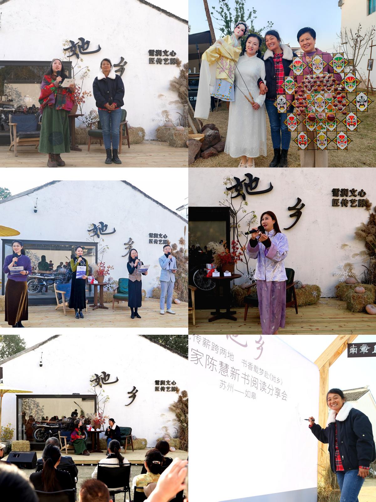 大雪时节的江南,晴光潋滟。12月7日,一场主题为“匠艺传薪跨两地,书香载梦赴《她乡》”的特别阅读分享与非遗交流活动,在苏州林渡暖村温暖举行。本次活动由如皋,苏州两地全民阅读促进会主办,苏州吴中区“南章1号”、苏州巴林景观规划有限公司共同承办,四研山房倾力策划。活动以“菜场女作家”陈慧新作《她乡》为核心,巧妙融合诗歌诵读、两地非遗展示与户外艺术展陈,为冬日暖村带来一股浓郁而热烈的文艺暖流。