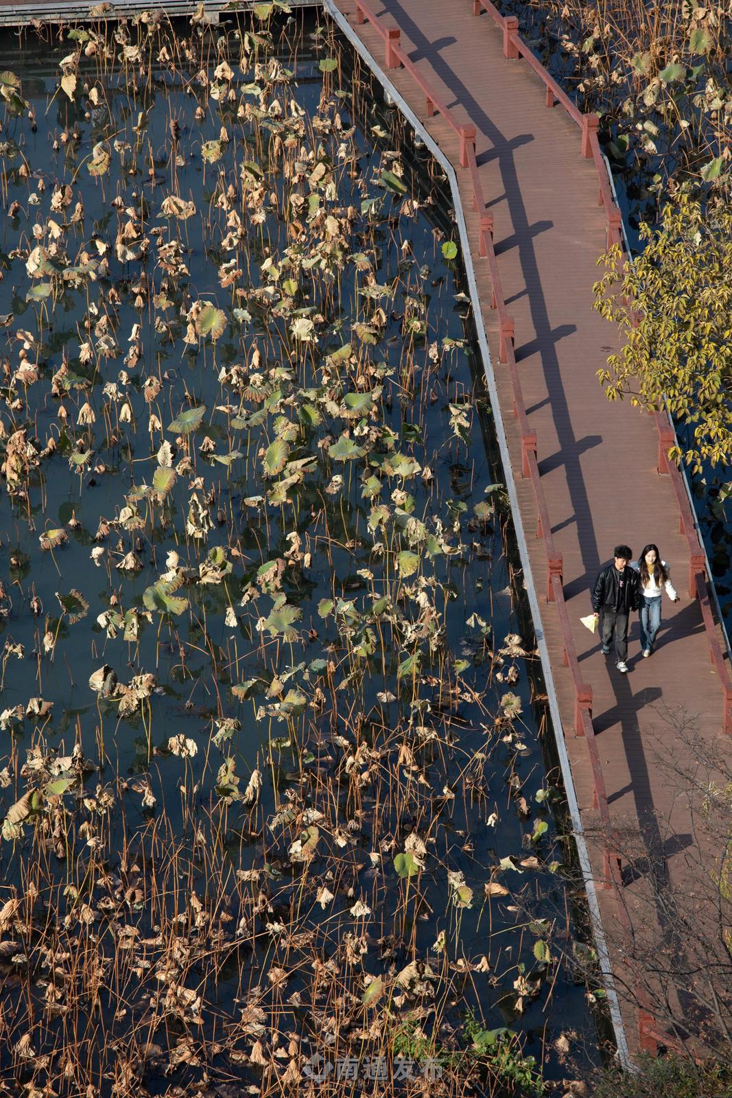 初冬时节,濠河景区荷花池呈现独特景致。12月8日,记者在濠河景区看到,昔日接天莲叶已开始疏影横斜,枯荷、曲茎在暖阳下勾勒出深浅交织的线条,构成一幅极具东方美学意蕴的冬韵图景。