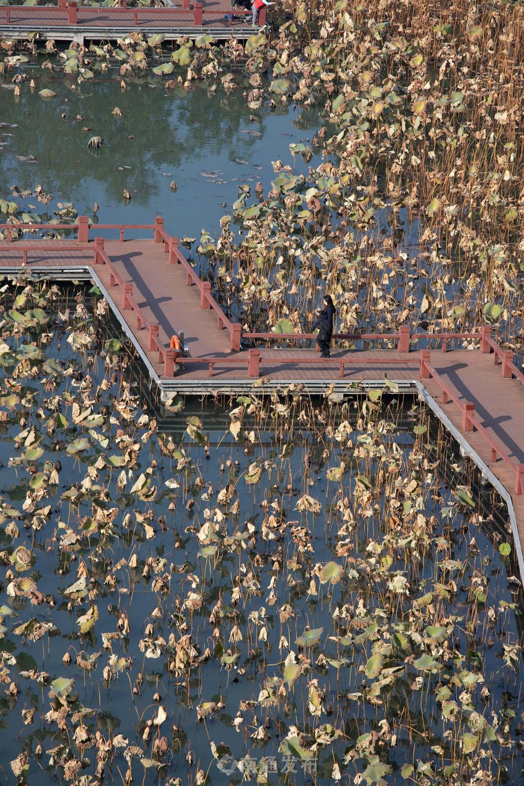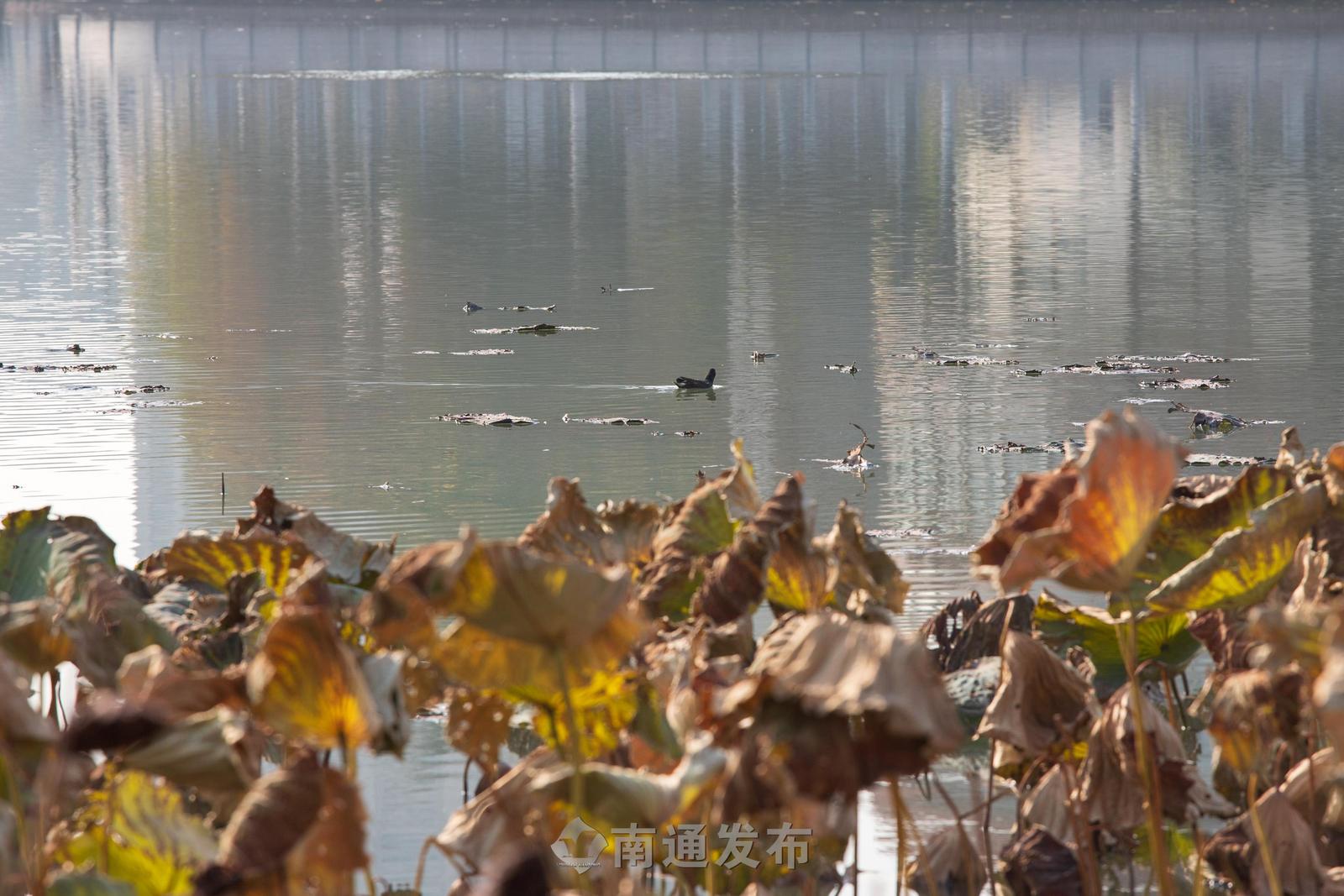 冬日残荷别样韵 光影交织绘通城