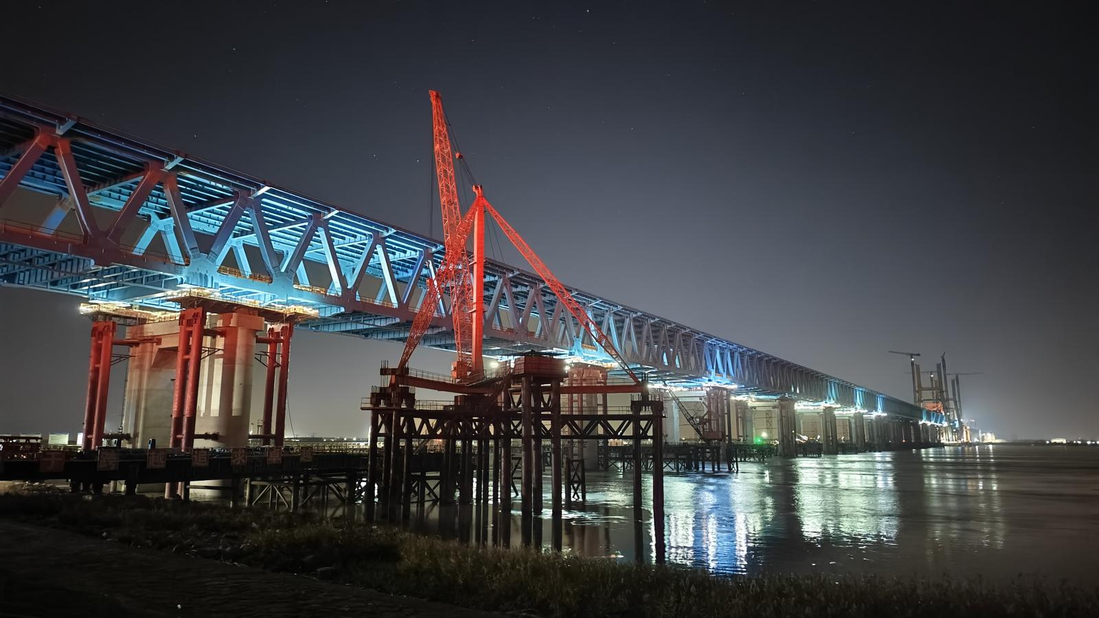 9日凌晨,崇启公铁长江大桥完成最后一轮桥梁顶推作业,非通航孔桥钢梁与主通航孔桥南边跨钢梁在主桥1号墩实现毫米级精准对接。这次“胜利会师”标志着全桥42轮顶推作业全部完成,为高铁过江不减速奠定基础。