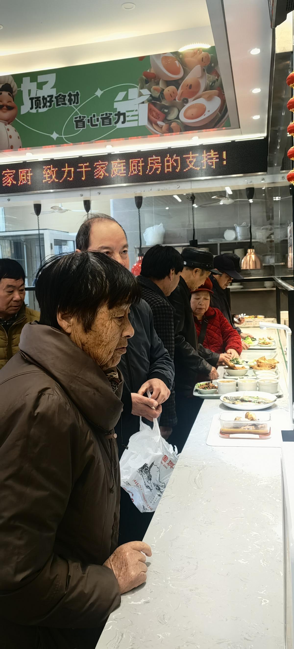 “来一份酸菜鱼、再来一份大排……”在永兴街道“大生家厨”社区长者食堂,陈锦和花了不到100元,买了八九个菜,置办了一桌丰盛菜肴,招待两位老同事。“好吃又实惠,比在家烧方便多了。”他笑着说,这里早已成为自家的“第二厨房”。