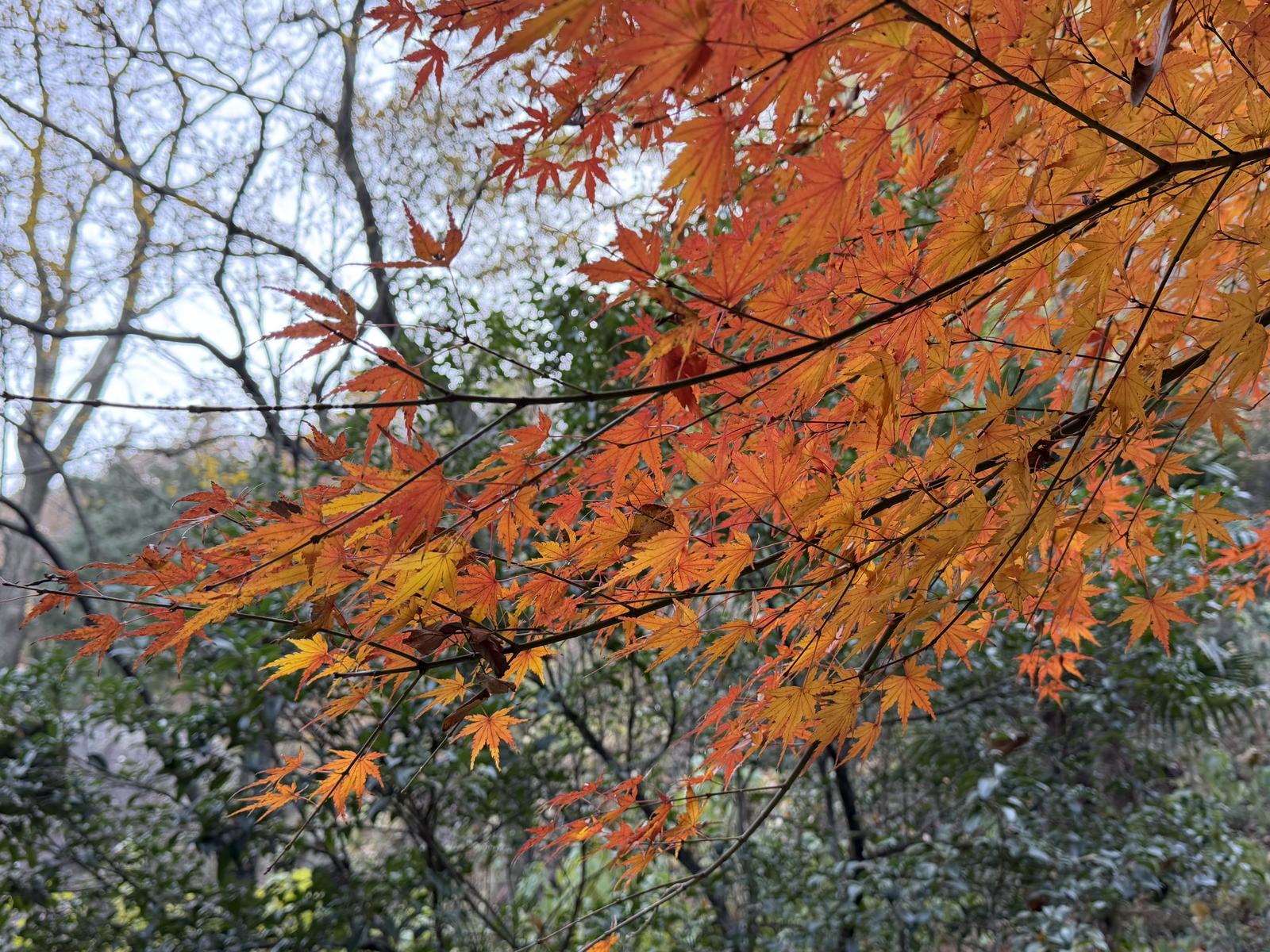 初冬时节,五山地区风景绚丽如童话世界。南通五山旅游发展有限公司绿化部部长蔡咏梅介绍:“景区以常见的鸡爪槭为例,夏季时叶片青翠欲滴,入秋后则逐渐转变为火红。池杉和落羽杉眼下已染上橙红,冬日里鲜少引人注目的石榴、樱花等,其实也属于变色树种。黄连木前不久也迎来‘最佳观赏期’,红叶如火焰般绚烂,吸引众多市民前来打卡。乌桕叶片变色较早,榉树、梧桐等尚未落叶的树种当下正呈现不同程度色彩变幻。”