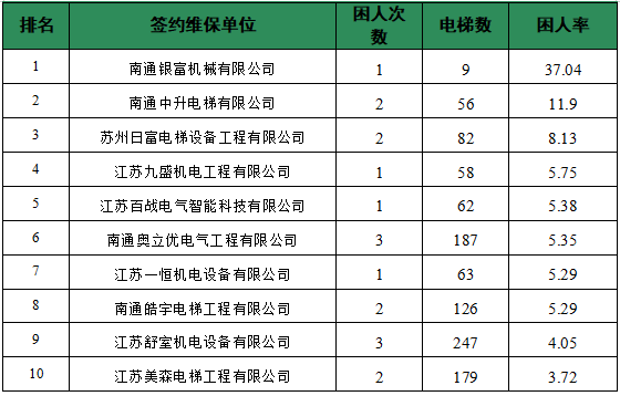 今年8月以来,全市电梯困人率呈持续下降趋势。市市场监管局近日通报的全市电梯应急救援处置情况显示,11月市电梯应急救援处置中心共处置困人故障386起,解救被困人员609人,困人故障数相比7月下降24.3%。