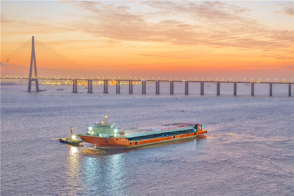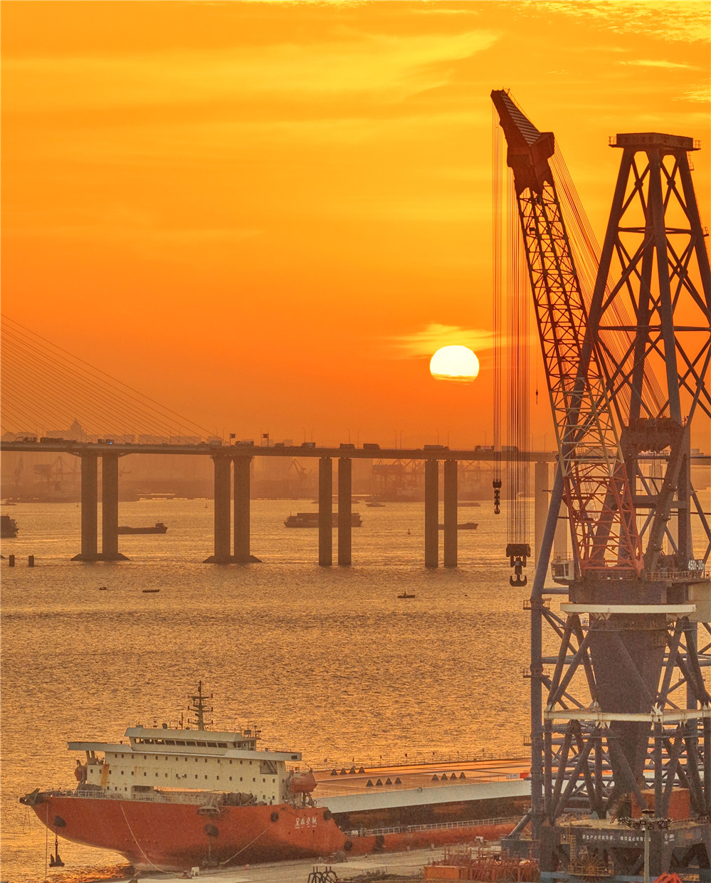 2025年12月9日晚,厦金大桥G4标首个重约4586吨大节段钢箱梁在南通振华重装码头顺利发运,标志着该项目即将进入大规模海上运输及吊装阶段。