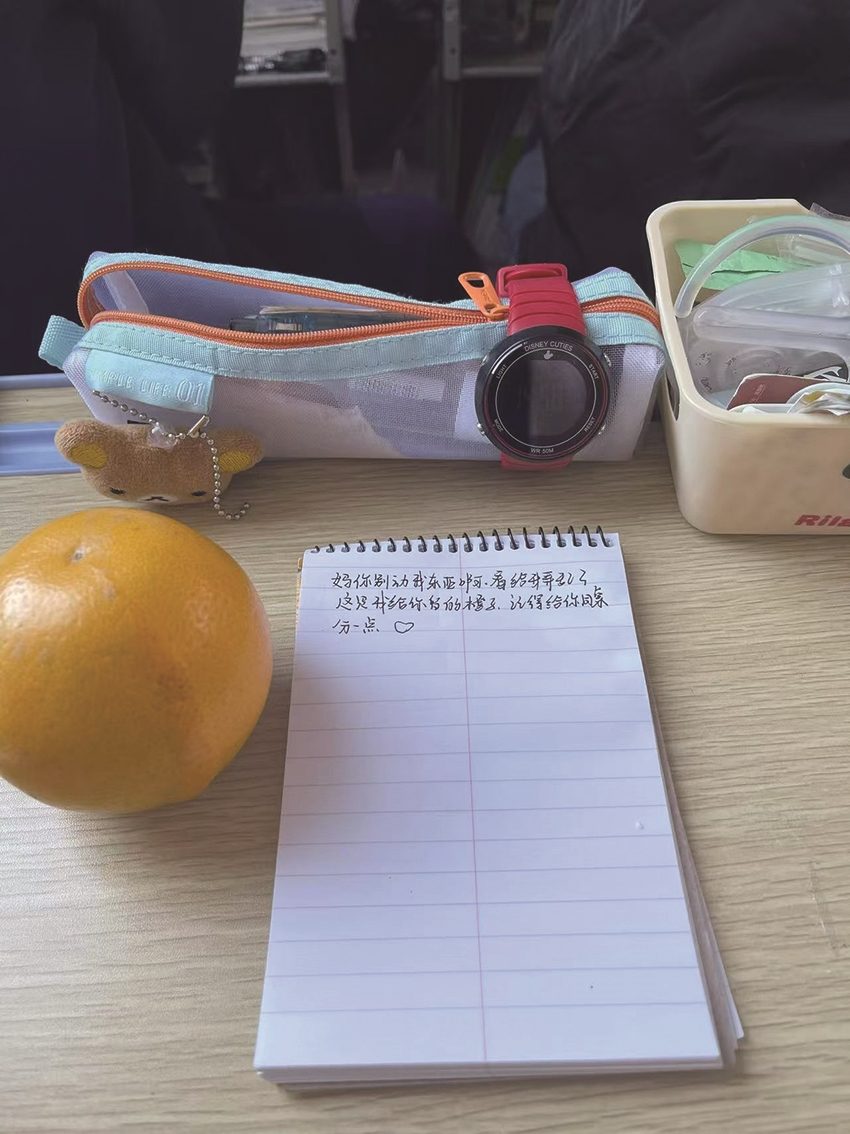 周日去参加女儿的家长会,到了她座位旁,瞧见她留的纸条和橙子。纸条上叮嘱别乱动她的东西,还让我把橙子分给同桌。我顺着纸条示意看向旁边,嚯,是位男家长,看着挺严肃,感觉不太好搭话。再瞅瞅那橙子,圆滚滚的,不像橘子能轻松用手剥开。