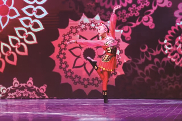 有人笑着问:“这动作现在谁还能整啊?”我盯着照片走神,想起当时老师给我们讲解《桃夭》,让我第一次触摸到了中华传统文化中最明媚的喜悦。老师解读道:“《诗经》里‘灼灼其华’是提步时的俏丽,‘其叶蓁蓁’是抖袖时的欢愉。”当我揣着诗集在桃树下凝望,粉瓣落满练功服的瞬间,旋身时忽然彻悟:中华传统文化从来不是书本里冰冷的文字,它是《桃夭》中抖落的繁花,是《唐印》里垂落的广袖,是《爱莲说》中舒展的腰肢,它活在舞蹈的每一次摆臂里,藏在足尖的每一次起落中。