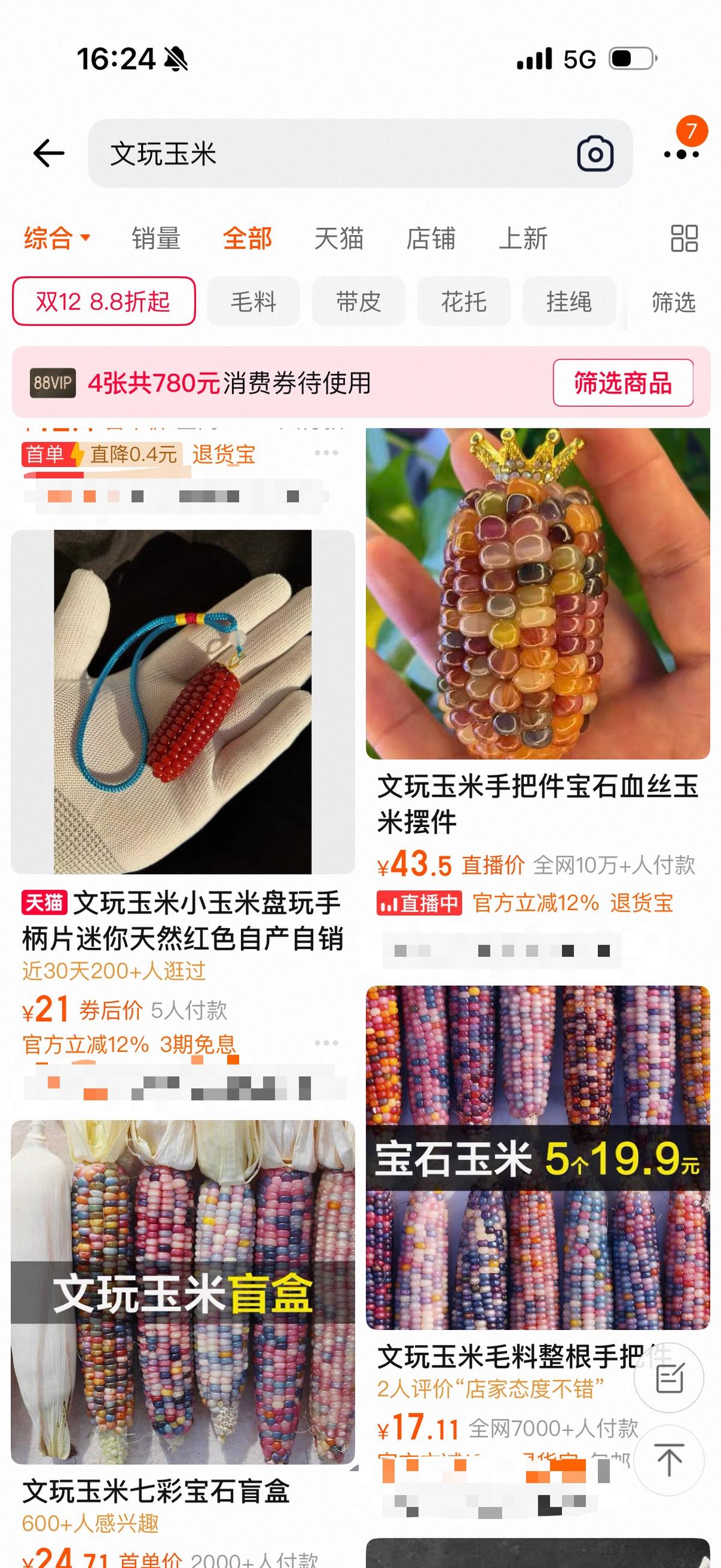 然而,在线上,卖得那真叫一个火。记者在淘宝上输入“文玩玉米”关键词,一大堆店铺瞬间跳出,根据不同的造型、品相、色泽,价格贵一些的可卖到一两百元,最便宜的只有七八元。
