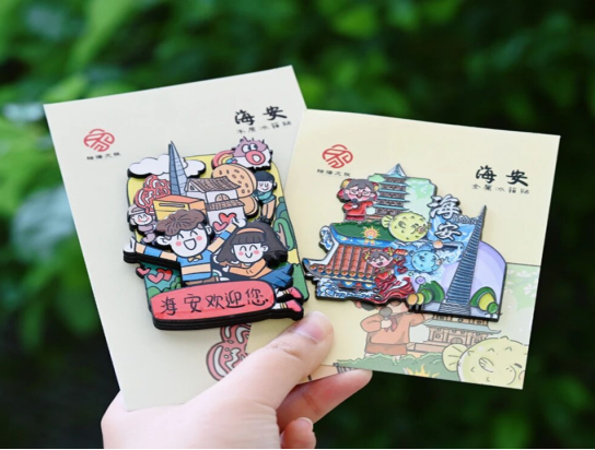 展陈面积不大,却处处透着“海安味儿”,9.85的票价暗藏对学子的殷殷祝福,海安自主开发的青墩石斧书签、七战七捷金属冰箱贴、明信片等24种具有本土元素的文创产品颇受欢迎,销售收入超15万元。