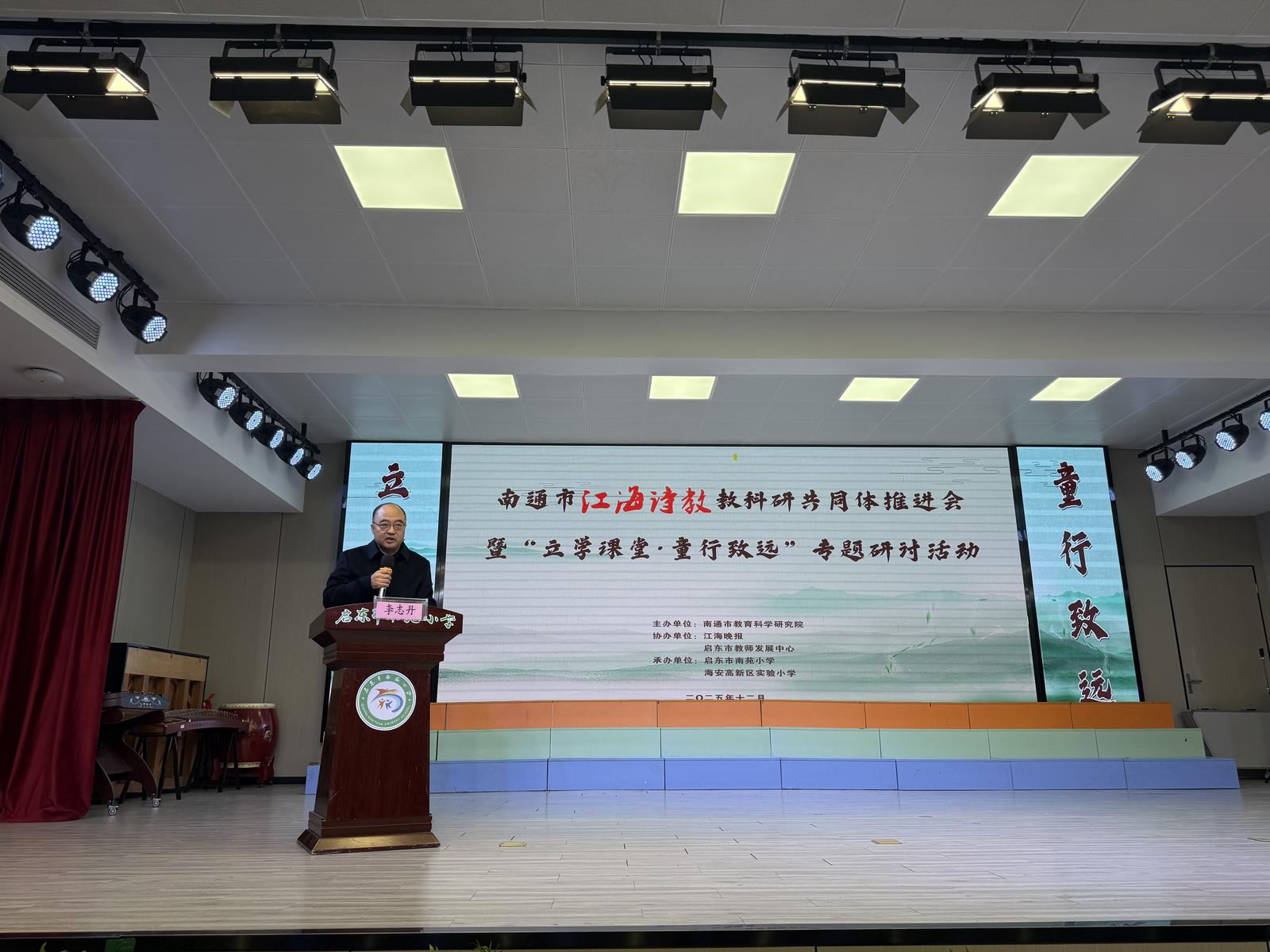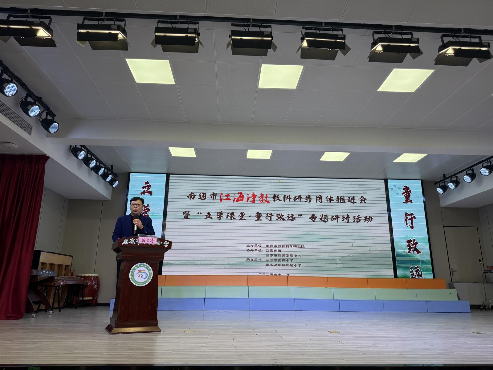 12月11日至12日,南通市“江海诗教”教科研共同体推进会暨“立学课堂·童行致远”专题研讨活动在启东市南苑小学举行。活动由南通市教育科学研究院主办,江海晚报、启东市教师发展中心协办,启东市南苑小学、海安高新区实验小学承办。
