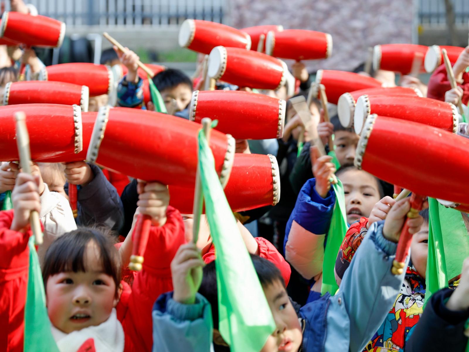 文化加持,动力满满。幼儿园将中华优秀传统文化融入阳光运动,让运动不仅是身体的锻炼,更是文化的浸润与精神的传承。学校结合地方特色与幼儿兴趣,引入传统舞龙狮、健身花鼓、花样莲湘、跳竹竿等民俗运动项目,改编成适合幼儿的趣味版本。孩子们在铿锵的鼓点中感受节庆的欢愉,在灵动的竹竿跳跃间练习协调与节奏,在彩龙翻飞与狮舞嬉戏中体验合作与勇敢。传统节日期间,学校还会举办“民俗运动游园会”,让孩子们在欢乐中亲近传统、在运动中涵养文化自信,真正实现以文化人、以动润心。