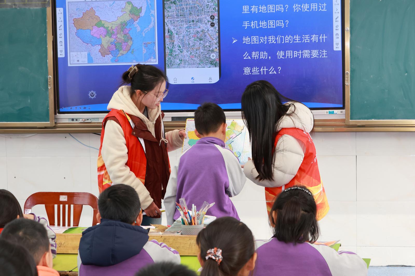 活动围绕“祖国旗帜”“社会主义核心价值观”“祖国地图”三大核心板块展开。在“祖国旗帜”环节,志愿者通过图片展板,生动讲述国旗、党旗、军旗的历史渊源与象征意义;“社会主义核心价值观”板块中,志愿者以生活案例和互动游戏为载体,让“友善”“诚信”等关键词扎根童心;“祖国地图”前,同学们在志愿者引导下寻找家乡位置,聆听各地风土人情,国家疆域与民族文化的认知在互动中不断深化。