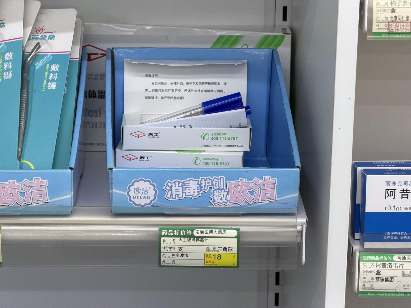 在市区一家大参林药店,店内一位工作人员直截了当地表明了她的看法,“相较于电子体温计,水银体温计确实便宜,一支只要几元钱,但目前店里暂时缺货。”