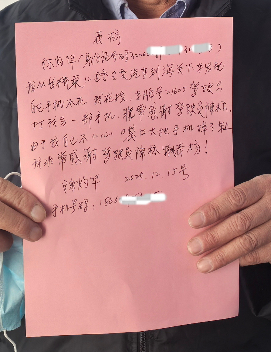 市民手机“坐过站”,公交司机暖心归还
