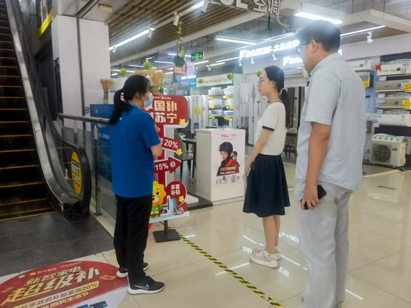 海门区审计局重点关注家电以旧换新政策宣传落实情况,审计人员实地走访销售门店,并与销售人员现场交流,检查政策宣传立牌是否摆放、补贴比率是否明确标注、销售人员政策是否熟练等情况,助力促进消费政策落地见效。