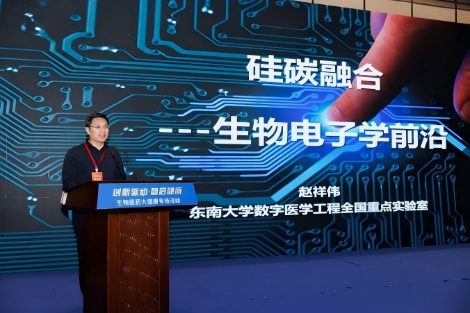 东南大学生物科学与医学工程学院教授、数字医学工程全国重点实验室常务副主任赵祥伟,作《硅碳融合——生物电子学前沿》主题演讲。作为教育部自然科学一等奖获得者,赵教授深度解析了生物技术与信息技术融合发展的前沿方向,系统阐述了硅碳融合在精准医疗、大数据、合成生物学等领域的颠覆性潜力,为南通抢占未来产业制高点提供了前瞻性指引。