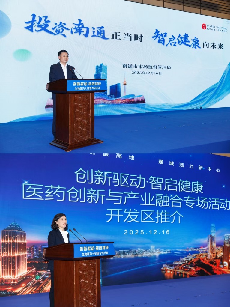 市领导在致辞中表示,南通将生物医药作为五大重点攻坚的战略性新兴产业之一,全力推动产业聚链成群、生态建圈。全市已建成9个生物医药特色园区,集聚4家跨国药企、382家药品及医疗器械生产企业,形成较为完整的产业链。今年前三季度,全市生物医药产业产值增速超8%,预计全年将突破400亿元。南通以“产创融合50条”等政策为支撑,千亿级政府投资基金赋能,深化产学研协同,全力打造“雨林式”创新生态。