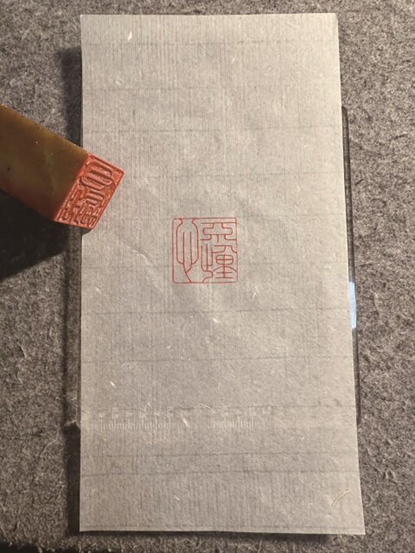 这三个字就像一道光照亮了黑暗迷茫中的我。第二天,我便着手设计印稿,比较后,拟采用小篆刻朱文印。将“心”字略加舒展,使其在视觉上与“不”“动”形成呼应,避免呆板;通过调整字距、行距,营造出疏密有致的效果,使印章有灵动之气,隐喻“不动心”并非僵化的固执,而是“外稳内活”的通透。我身体并未痊愈,分三天刻好大概,又用一天仔细修改,最后定稿、写边款。钤印后拍照发给篆刻老师看,老师点评“好有感觉(三个大拇指)”。
