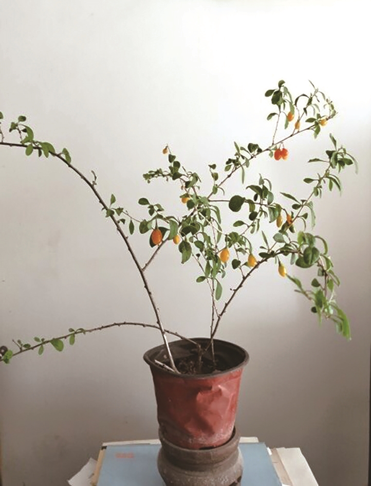 春天,一次散步途中,看见路边一棵枸杞的幼苗。我就把它移栽到一个小小的塑料盆里,放置在家中北窗的架子上。我并不把它当回事,只不过是浇浇水而已。