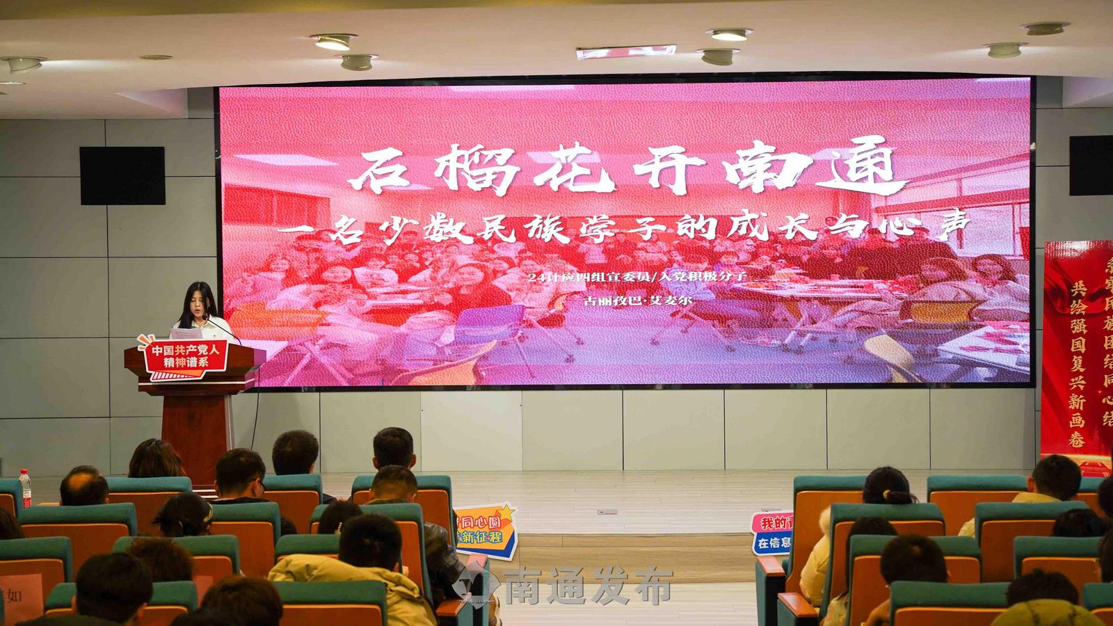 作为深化新时代统战工作、拓展思政育人格局的重要举措,本次活动特邀南通市农业农村局执法支队副支队长、贵德县农牧科技局挂职副局长汤道玲作专题报告。报告以“苏青奋进共绘发展新篇章”为主题,汤道玲结合自身在支援合作一线的经历,分享了促进民族地区发展、服务青年成长成才的宝贵经验,系统阐释了东西部协作、各民族交往交流交融对于推动共同发展、促进民族团结的重大意义。