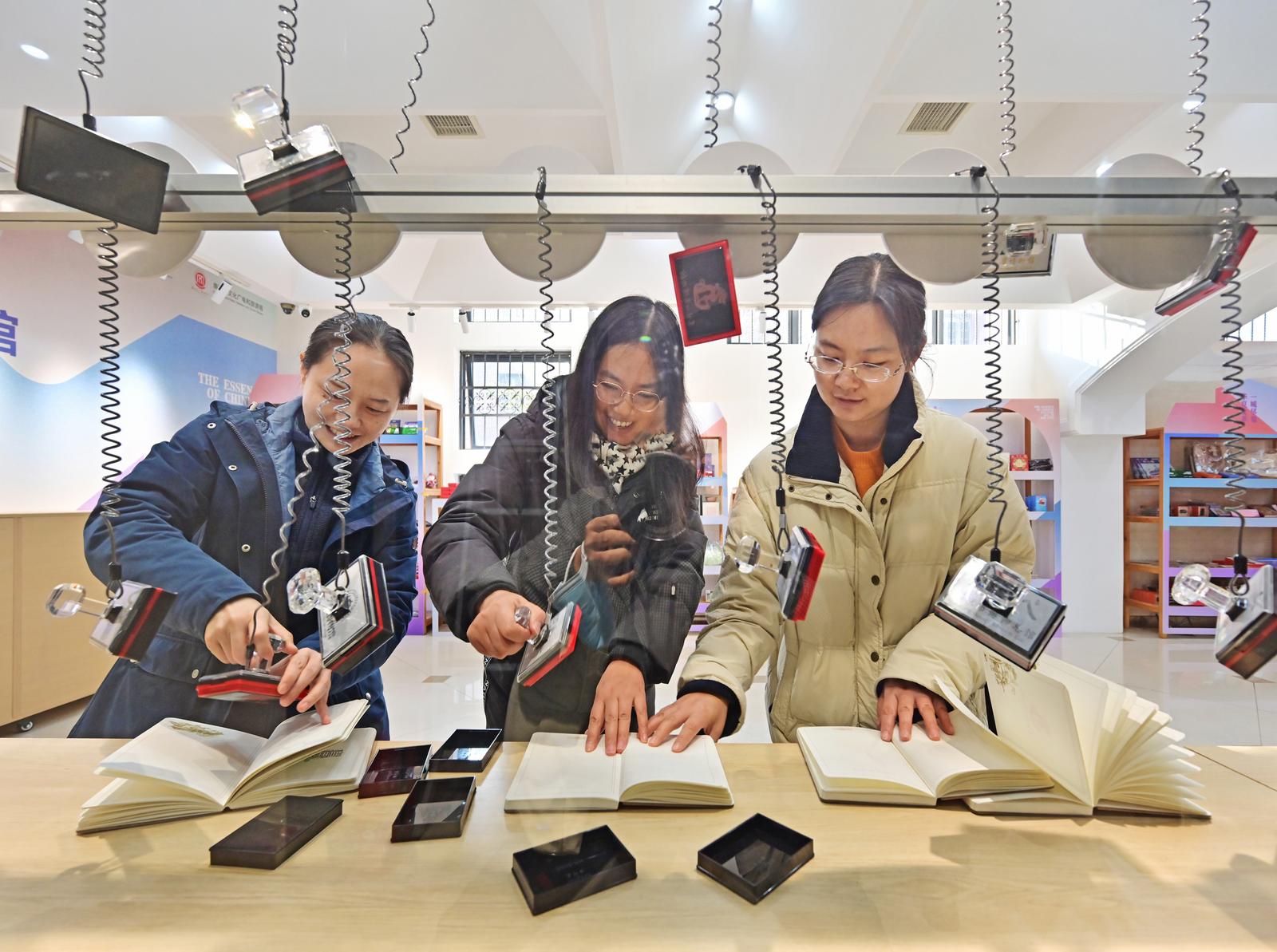 一边逛得兴致正起,一边“盖”得热火朝天。商店深处陈列着120余家博物馆的特色印章,成为集章爱好者争相打卡的热点。“能一次性集齐这么多博物馆的印章非常难得,所以想趁早完成收藏。”来自南通中医药文化博物馆的张茜是一名集章爱好者。每参观一座博物馆,她都有意识地收集印章,既作为个人纪念,也常赠予亲友。她说:“每一枚印章都代表着一座馆的标志性建筑或文物,别具意义。通过印章认识一座馆、了解一座馆,让参观更有仪式感。”