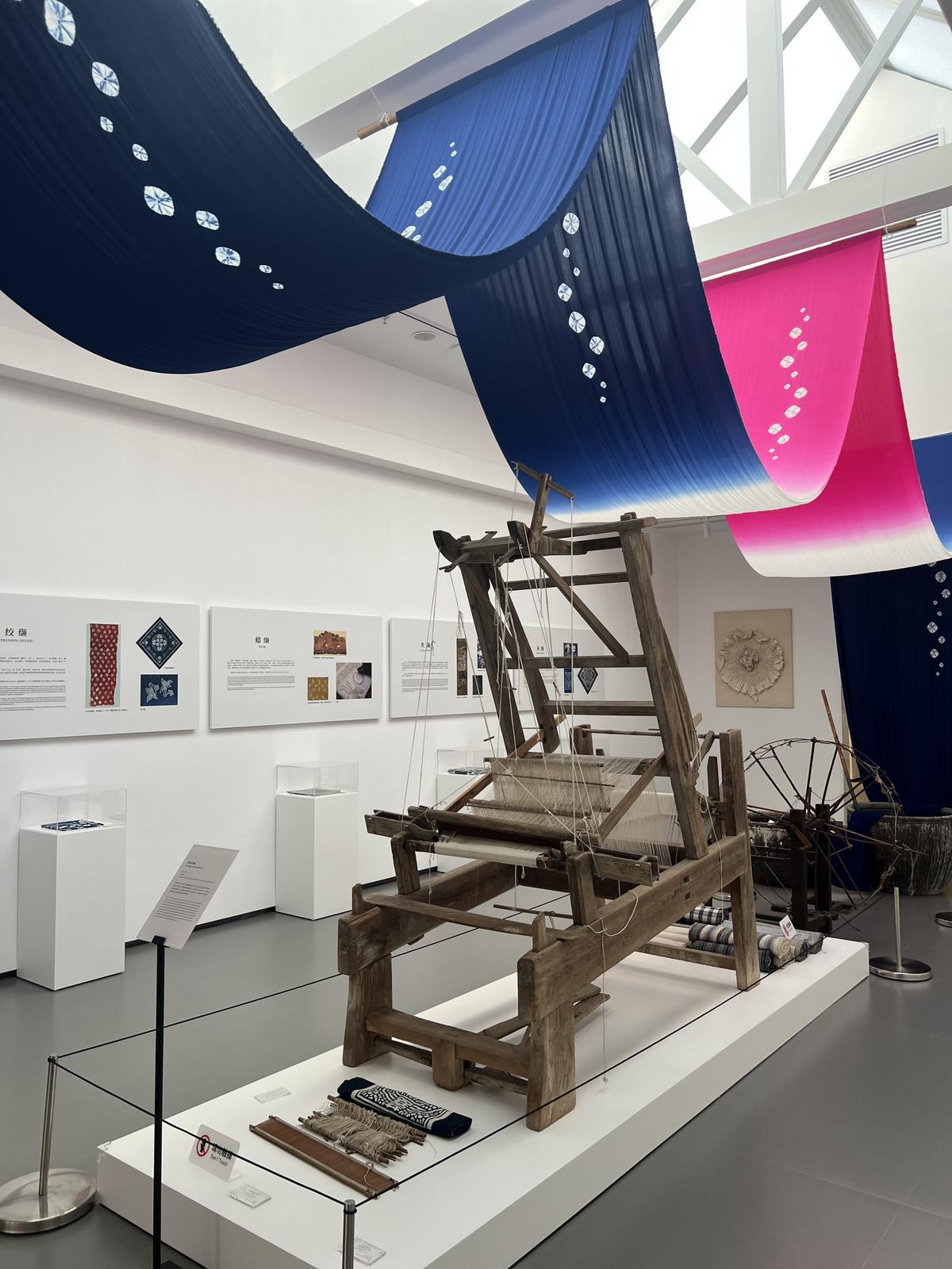 踏入位于海安的南通扎染博物馆,蓝白相间的光影流转,江南韵味的古今交融,都讲述着从古法“绞缬”到当代艺术染整的技艺脉络。