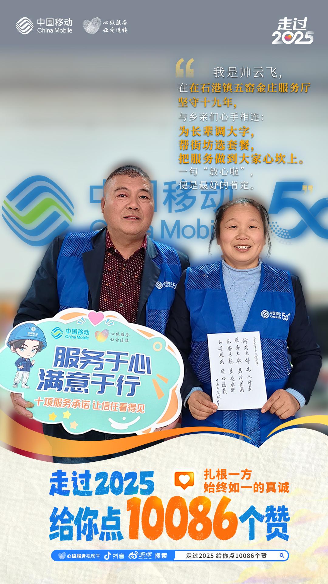 2006年,帅云飞与妻子在这条老街上开办移动服务厅。没有醒目的电子屏,陈设略显陈旧,但"中国移动"的标识却在居民心中有着沉甸甸的分量。十九年来,夫妇俩从青丝到鬓染微霜,始终恪守"见客为亲"的服务理念,将这片小小天地打造成街坊邻里的"便民驿站"。