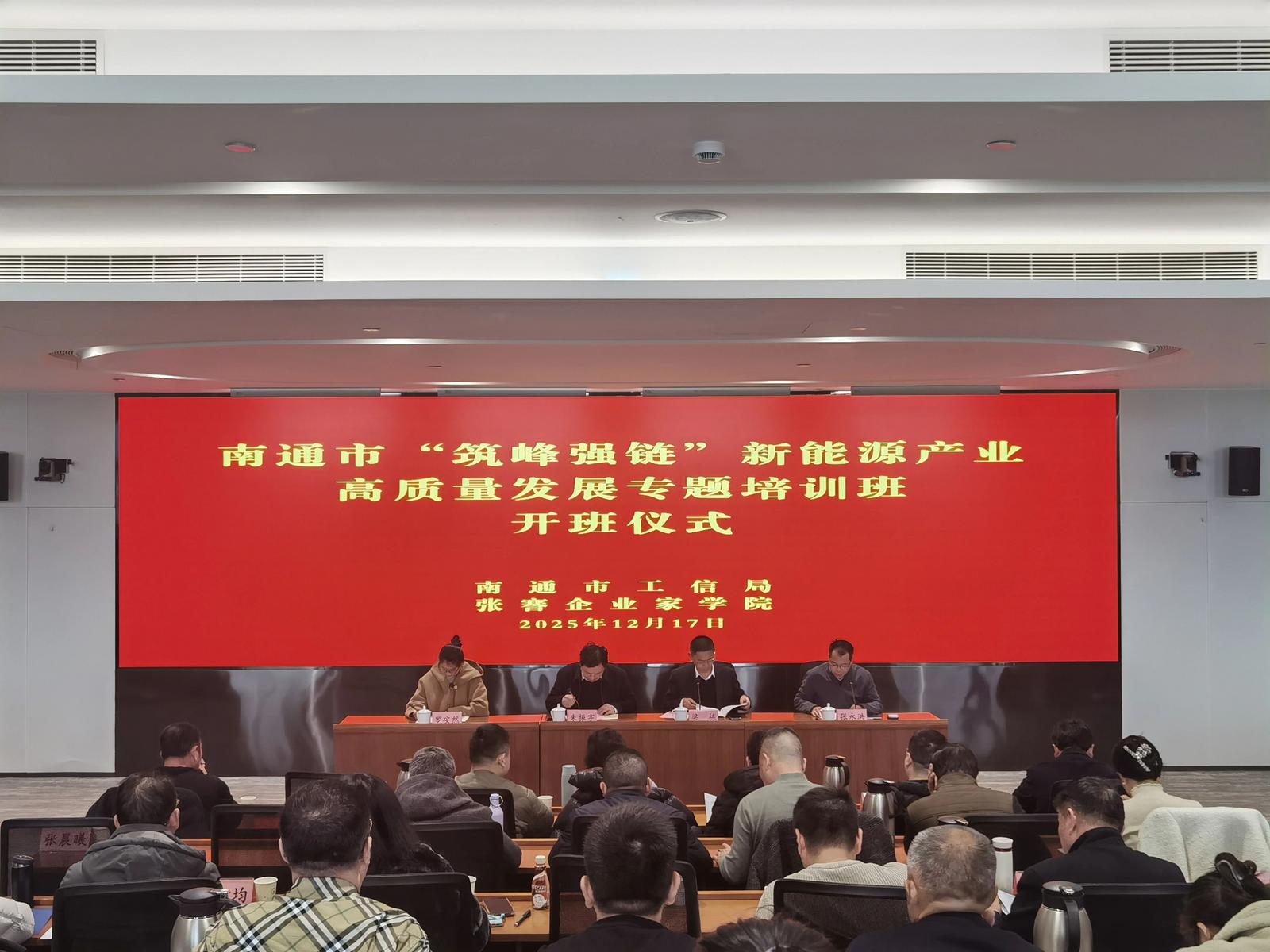 17日,南通市“筑峰强链”新能源产业高质量发展专题培训班正式开班,此举旨在落实我市“616”现代产业体系建设部署,深化“筑峰强链”品牌系列活动实效,加速全市新能源产业向高端化、智能化、绿色化方向迈进。