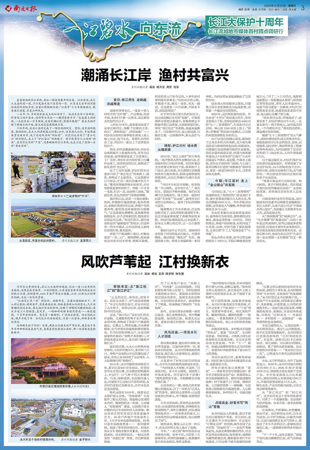江风拂面,芦影婆娑;乡愁缱绻,烟火可亲。长江畔的永兴村,以生态为底色、以守护为根基、以融合为路径,让这片浸润着江水灵气的乡土,焕发出了生生不息的活力,更凝练成江海交汇处,一道熠熠生辉的乡村振兴剪影。