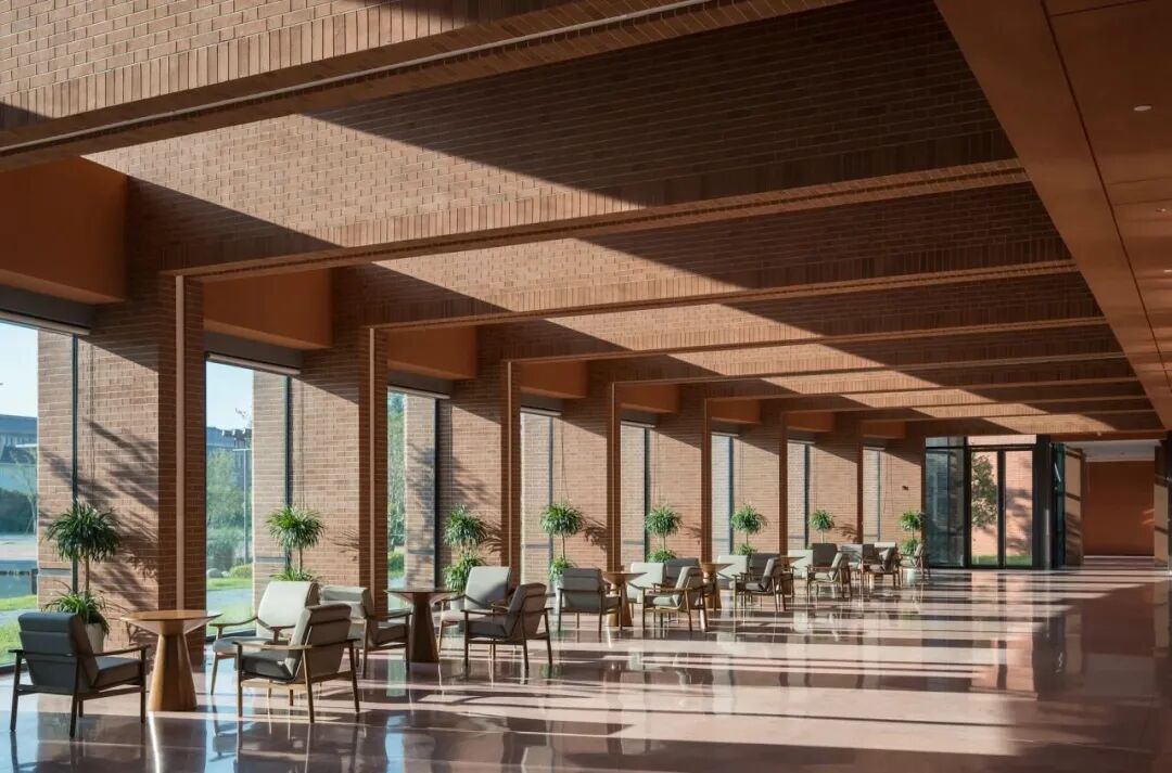 张謇企业家学院,以红砖为核心建筑材料,线条明朗、结构和谐,墙面凹凸有致且严丝合缝,将古法工艺的匠心与现代简约美学完美融合,更暗藏“实业报国”的精神隐喻——红砖的厚重沉稳象征着张謇爱国精神的百年传承,开放式的校园布局则彰显着新时代企业家的开放胸襟。