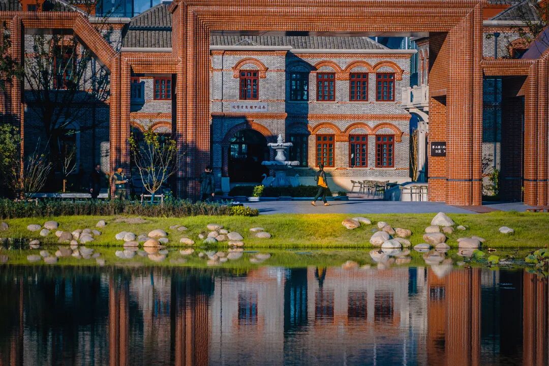 漫步校园,湖畔的红砖建筑群与茵茵绿意相映成趣,光影流转间,斑驳砖影与灵动光线交织错落,仿佛能与百年前的张謇先生达成精神共鸣;每一处细节都让“敢为人先、兼济天下”的情怀可观可感,历史的厚重与当下的鲜活在此温柔相拥。张謇企业家学院已然成为南通市标志性建筑之一,更成为江海大地对外展示的一张璀璨名片。