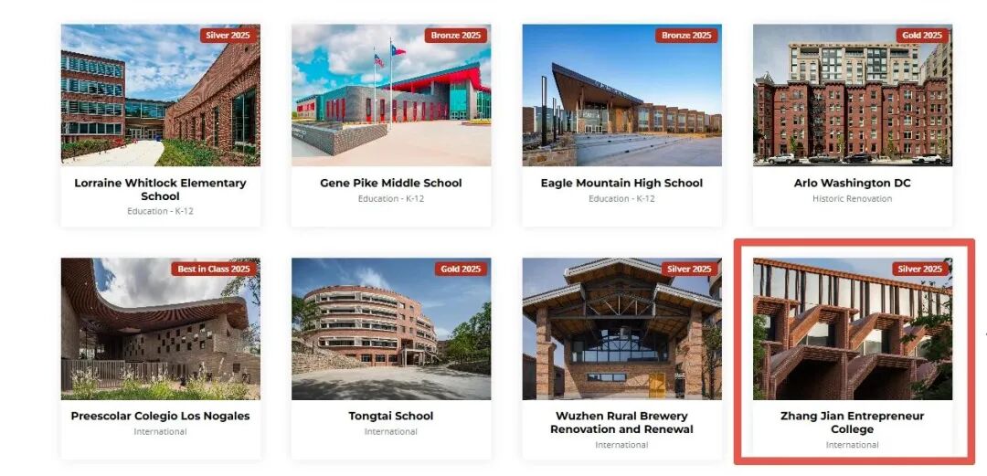 近日,2025美国砖建筑奖 Brick in Architecture Awards公布获奖名单,全球共42个项目获奖,其中,由中衡设计集团(ARTS Group Co., Ltd)打造的张謇企业家学院项目,凭借独具匠心的设计理念与精湛的红砖工艺,斩获国际项目银奖!