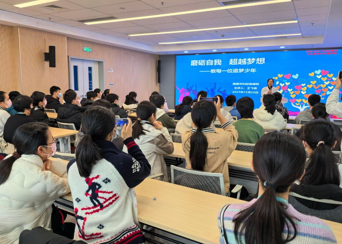 随后,在医院2号楼21楼会议室,儿童心理卫生科王飞英主任带来专题心理科普讲座。讲座紧扣青少年生长发育关键期特点,以贴近校园生活的案例和通俗易懂的语言,围绕情绪管理、压力调节、人际交往等青少年关注的热点话题展开。王主任引导同学们正确认识青春期可能出现的心理困惑,现场分享“情绪日记”“深呼吸放松法”等实用心理调适技巧,助力大家筑牢心理健康防线,以积极乐观心态应对学习与生活挑战。