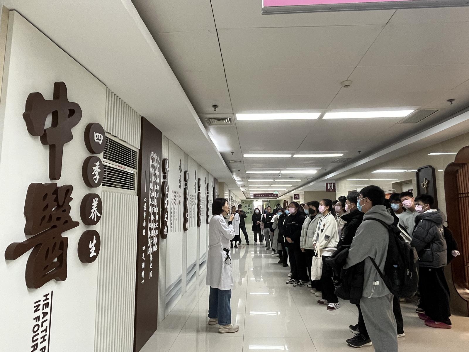 活动伊始,学子们首先来到医院1号楼4楼中医馆,开启中医文化学习之旅。中医科钟灵毓医生以生动的历史故事为切入点,系统讲解中医药发展史,从神农尝百草的传说,到扁鹊“望闻问切”的诊疗智慧,再到《黄帝内经》《本草纲目》等经典医学典籍的深远影响,让同学们直观感受中医文化的源远流长与厚重底蕴。结合当下季节特点,钟医生还针对性普及四季养生知识,详细拆解春季养肝、夏季防暑、秋季润燥、冬季进补的饮食调理要点、作息规律及养生禁忌。现场,同学们认真记录笔记,主动与医生互动交流,不少同学还分享了自己的养生小妙招,学习氛围浓厚。