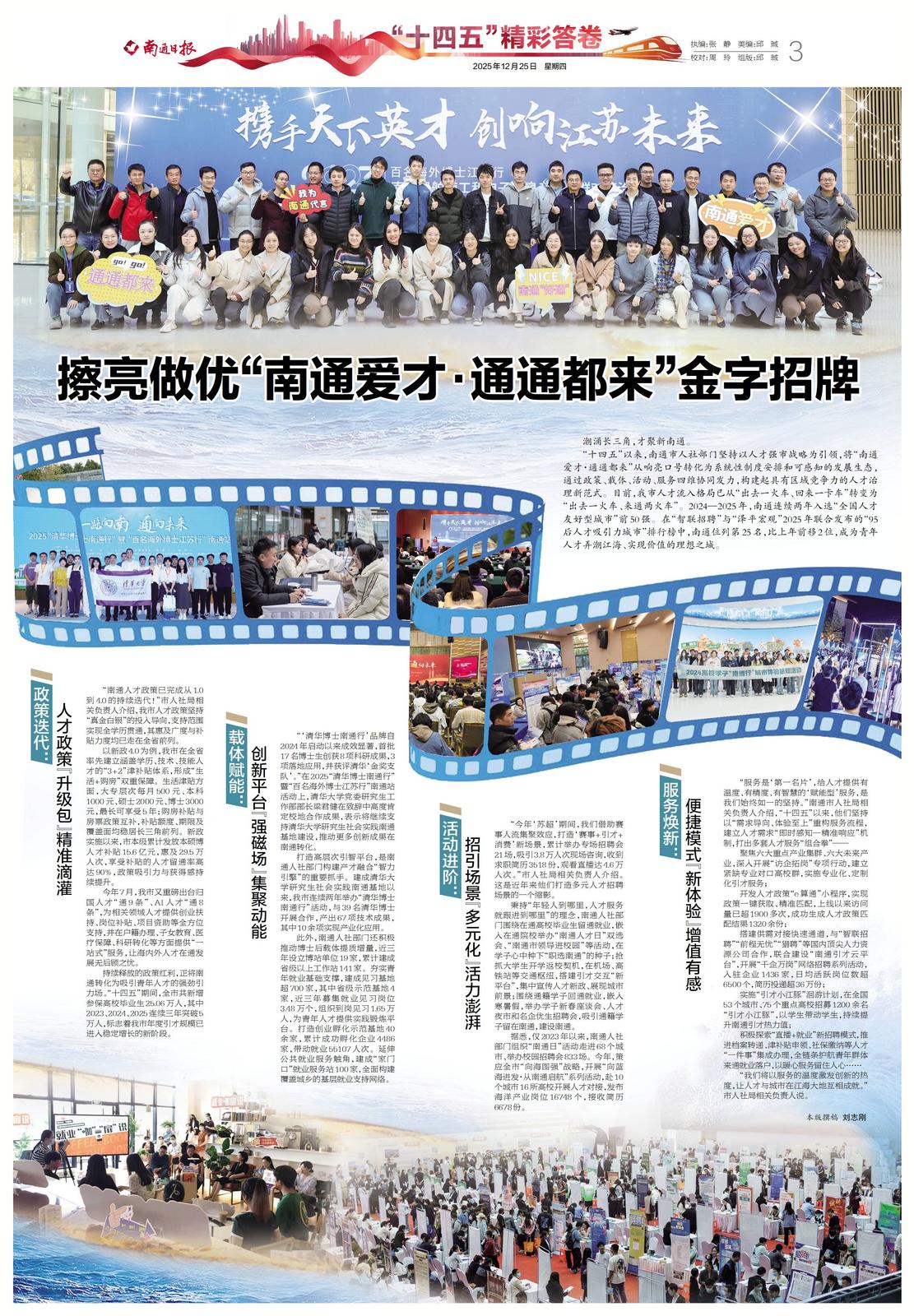 “十四五”精彩答卷 | 擦亮做优“南通爱才·通通都来”金字招牌