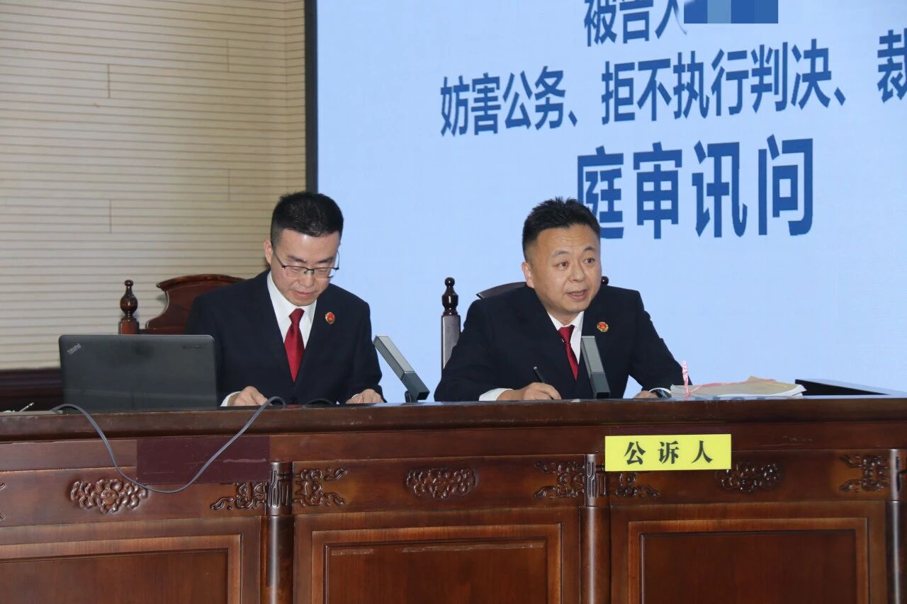 庭审现场,海门区检察院党组书记、检察长刘志华带领公诉团队针对被告人施某某展开针对性讯问,围绕妨害公务行为的触发场景、言语威胁与肢体对抗的具体细节、拒不执行判决裁定过程中转移财产的动机与操作流程、高消费行为的时间节点等关键问题层层递进发问。同时采用多媒体示证方式,通过法庭投屏直观展示执法现场冲突视频、被告人网络消费订单、二手车辆交易合同等关键证据,让复杂的案件事实清晰呈现。通过被告人的供述与在案证据形成相互印证,完整构建了本案妨害公务、拒不执行判决裁定两罪的基本事实体系,为后续定罪量刑筑牢事实根基。