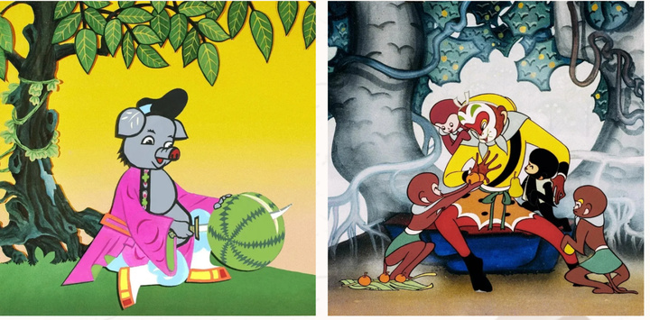 1958年,他们又成功拍出了中国第一部剪纸动画片《猪八戒吃西瓜》,同年完成了电影《渔童》。