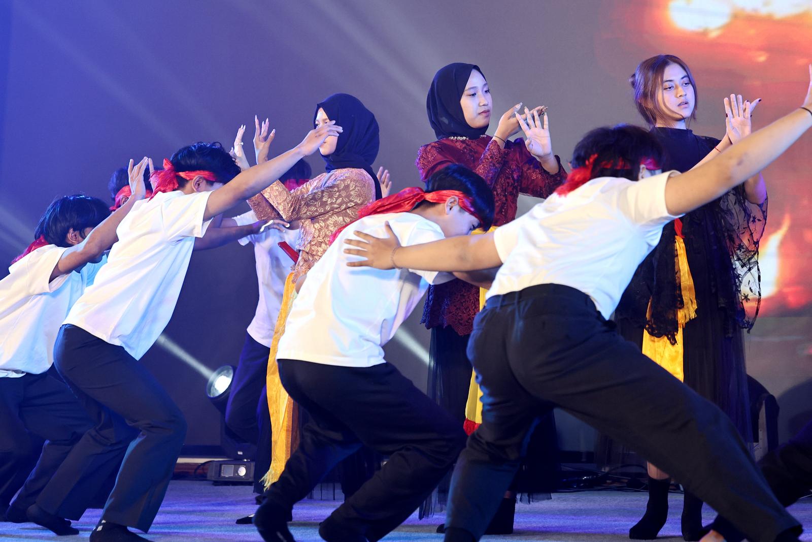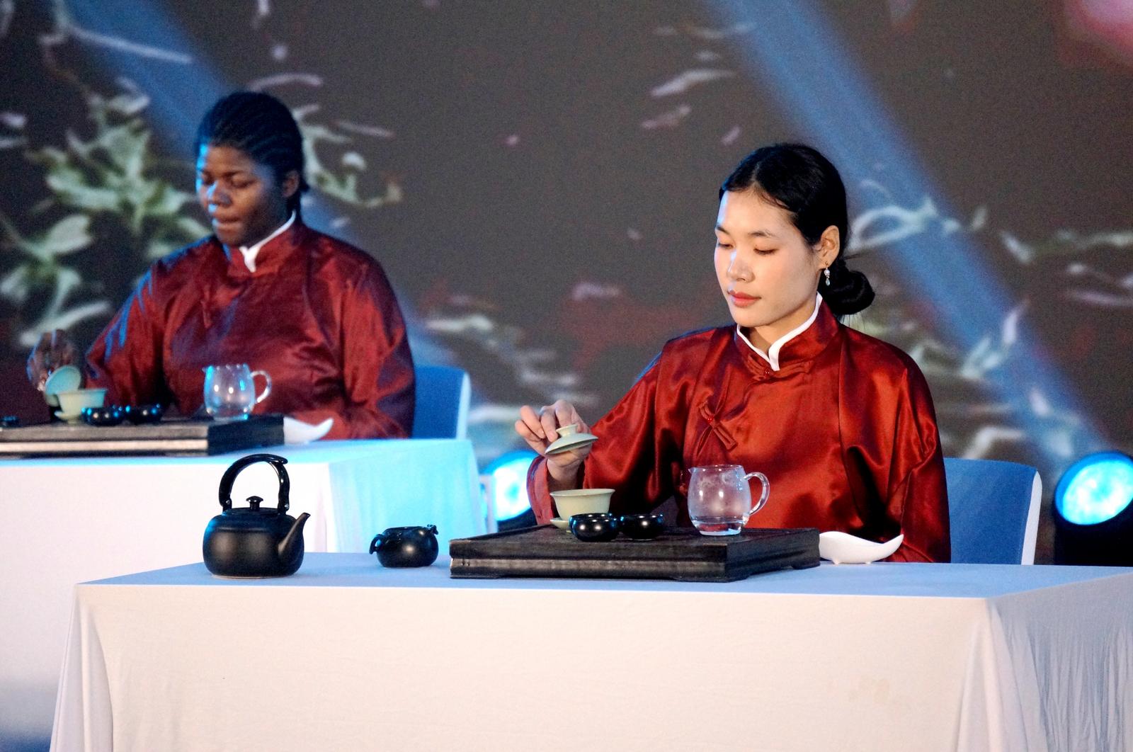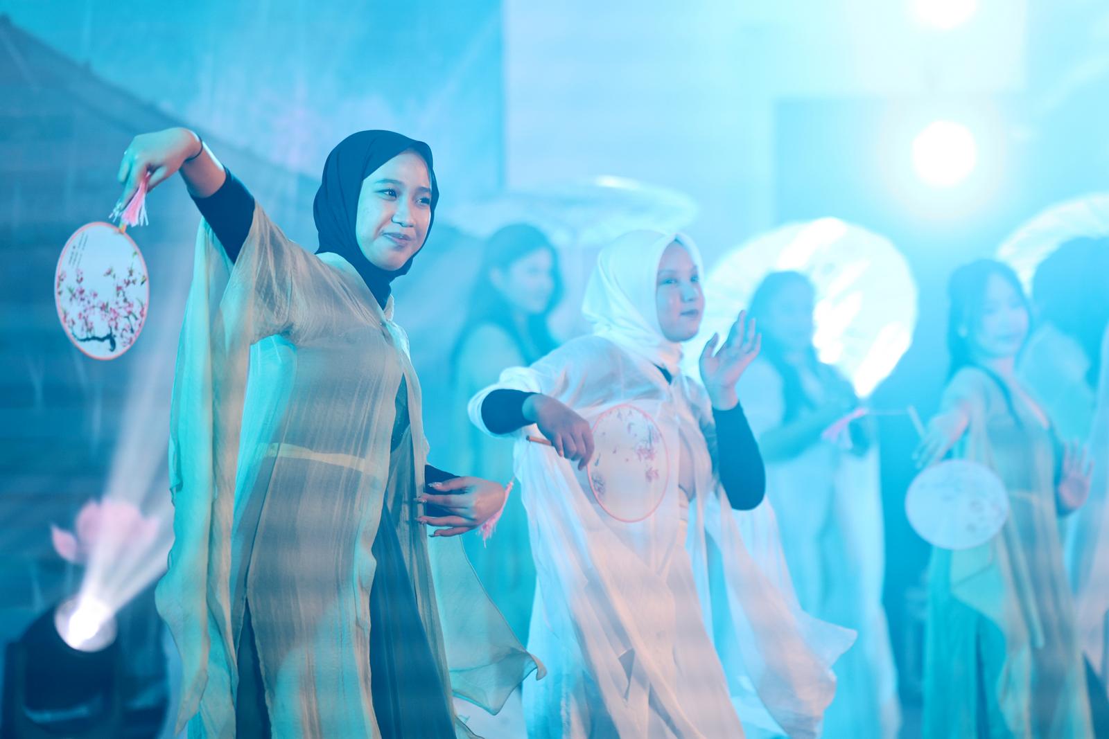 汇演在京剧表演《梨园同声汇知音》中拉开帷幕。留学生们身着传统戏服,以标准唱腔与身段演绎经典剧目片段,展现中华戏曲艺术的独特魅力。随后登场的情景舞蹈《神奇的印尼群岛》通过灵动舞姿与绚丽服饰,生动呈现了印尼群岛的自然风光与人文风情,赢得阵阵掌声。老挝群体舞蹈《笙声不息》则以当地传统配乐为核心,配合民族舞蹈动作,展现了老挝人民对生活的热爱与对和平的向往。茶艺秀《江海一脉》成为全场亮点之一。