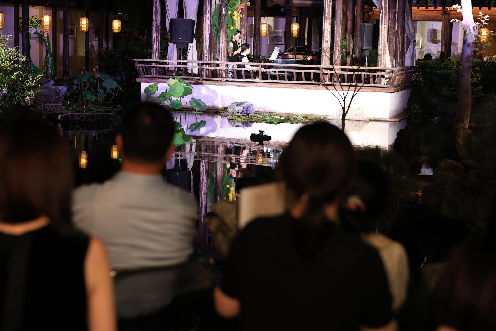 南通滨江公园风帆广场上,南通大学交响乐团的乐师们身着礼服,奏响莫扎特《G大调弦乐小夜曲》、巴赫《小步舞曲》等经典乐章。江水为伴奏,蓝天为幕布,一场露天交响盛宴让市民游客沉醉不已。唐闸涉园的百年紫藤架下,音乐家邬慧娴的音乐沙龙诗意上演,肖邦的夜曲与假山流水共鸣,巴赫的复调随晚风流淌,观众或倚水榭栏杆,或坐湖石台阶,在江南园林的实景中感受“可听、可游、可感”的沉浸式艺术体验……