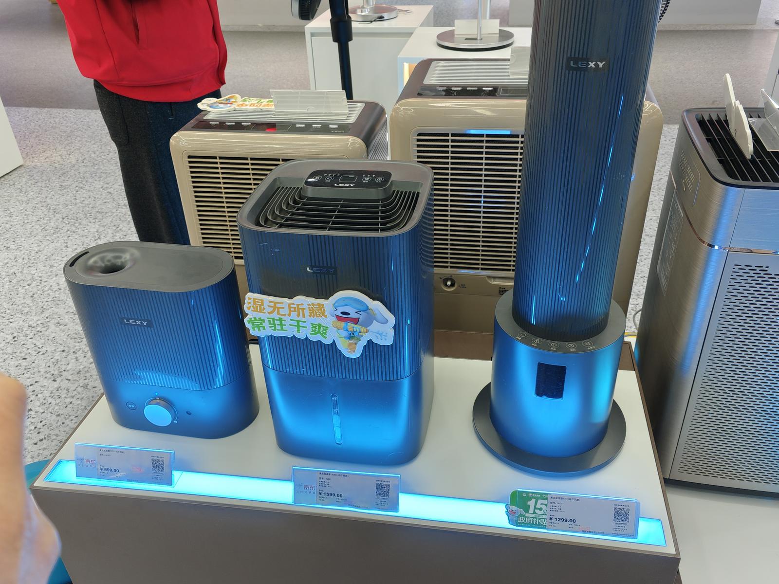 记者随后来到不远处的南大街京东电器,一位店员同样热情地向记者讲解道:“最近天气冷,开空调取暖导致很多人家里比较干燥,甚至一些小孩子脸上都起皮了,所以前来选购加湿器的市民不少。”她指着三款莱克加湿器一一盘点着它们的特点:“这款小的899元,水箱2升,放桌面正合适;另外两款都是4升,可以直接放地上。方形的1599元,是无雾加湿,不会打湿周围;圆柱形1299元,是有雾加湿。它们都带负氧离子净化和深层软水过滤,水箱里还有紫外线灯,杀菌后再加湿,用起来更安心。”