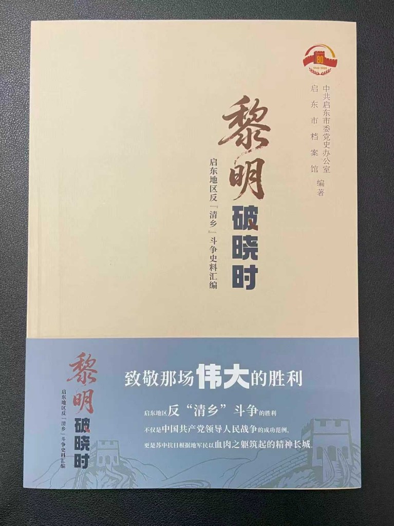 12月25日,由启东市委党史办联合启东市档案馆共同编著的《黎明破晓时——启东地区反“清乡”斗争史料汇编》一书正式公开出版。
