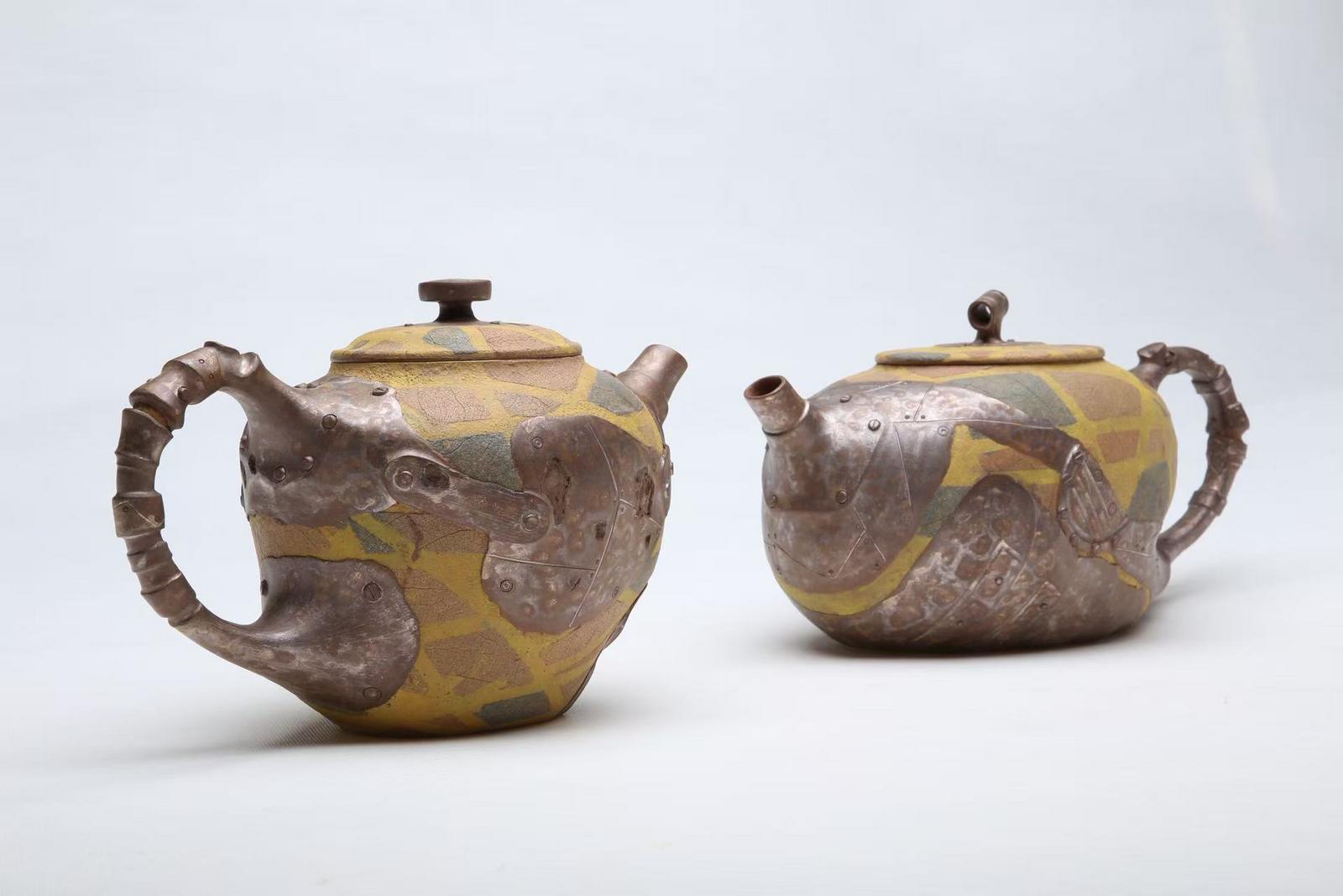 有了数字模型,下一步是将其从虚拟变为实体。团队采用了先进的紫砂3D打印技术。专用陶泥被精确地层层堆积,最终打印出完全吻合声波模型的茶盘素坯。此外,作品中的双生茶壶,其壶体造型也参照了水韵的低频节奏,通过传统紫砂泥片镶接与算法生成的浮雕贴片相结合的方式成型。经过高温窑火的淬炼,这些承载着声音密码的泥土,最终固化为可触可碰、可品可用的茶器。郁献军强调,整个过程深度融合了其团队自主研发的“AI智雕塑平台”,该平台为从算法生成到三维建模的全流程提供了核心支持。