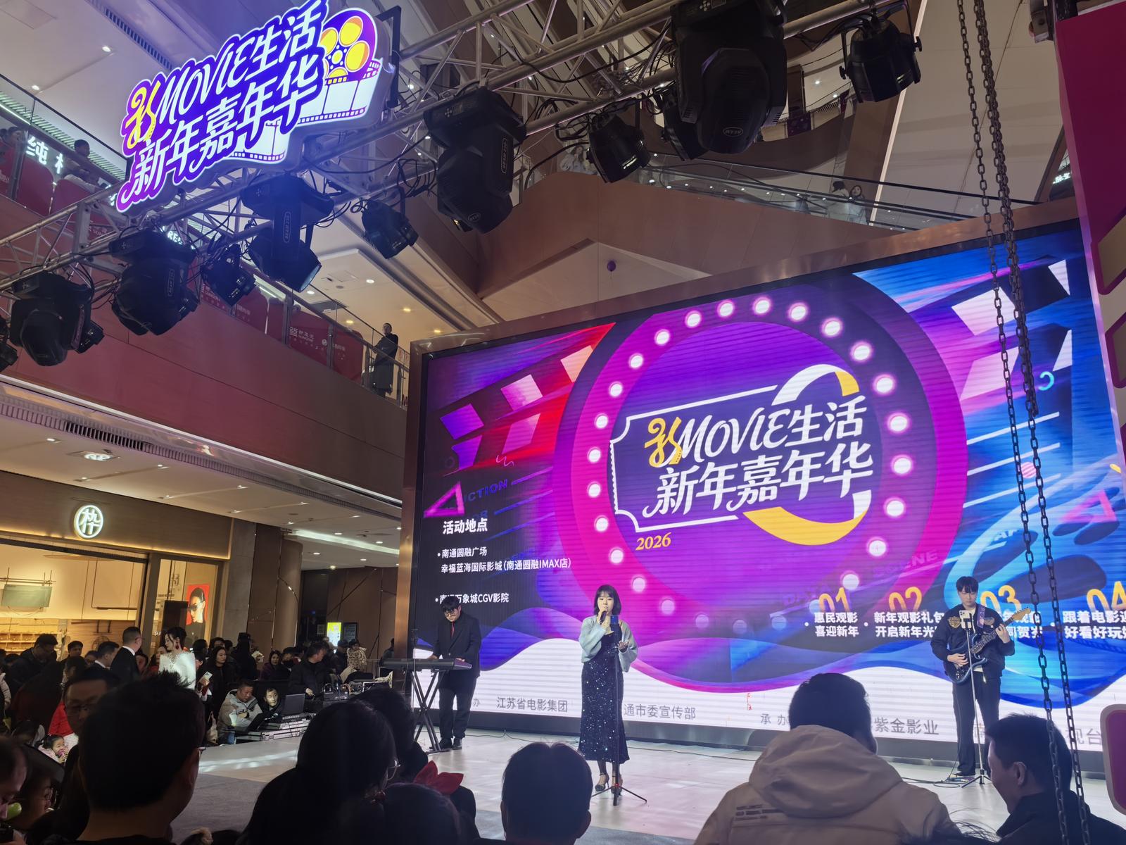 江海为幕,星光作伴。2025年12月31日晚,“MOVIE生活新年嘉年华”跟着电影迎新年活动热烈来袭。南通圆融广场、幸福蓝海国际影城(南通圆融IMAX店)、万象城CGV影院等地化身为开放式片场,电影金曲、科技表演、互动游戏与零点狂欢交织,用一场光影流转的跨年盛宴解锁跨年夜的专属浪漫。